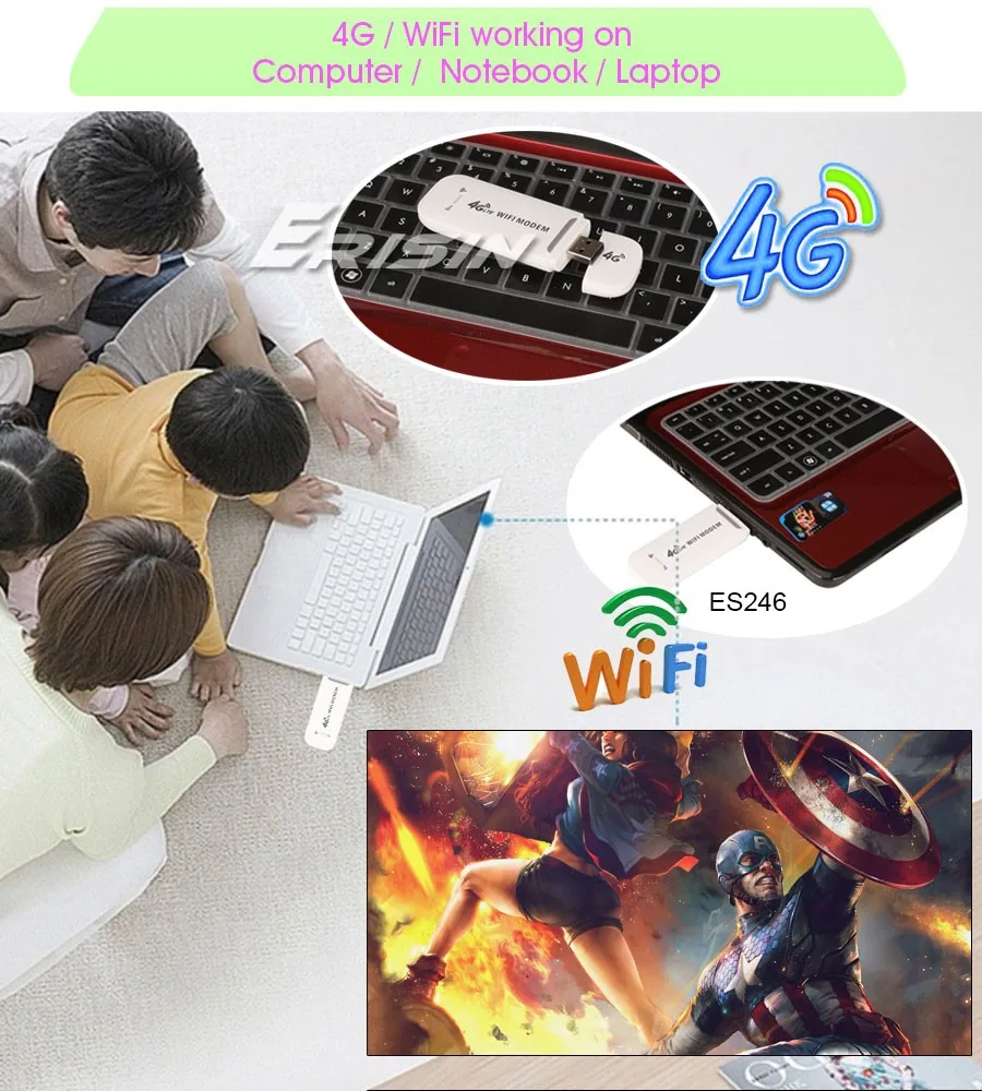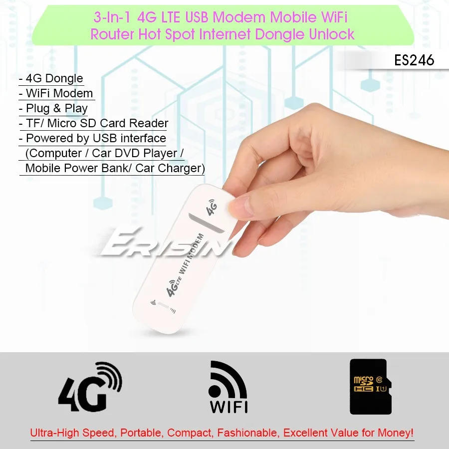 Отзывы о Erisin ES246 4G USB WiFi модем Hotspot маршрутизатор LTE Dongle SIM-карты для Android радиостанций |