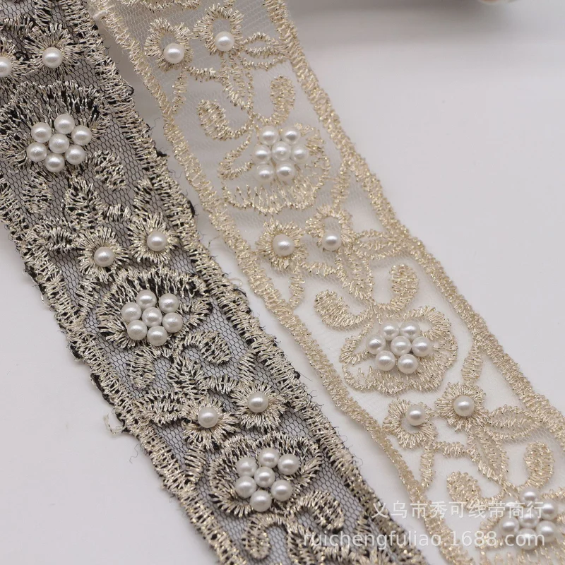 Отзывы о 1 ярдов 40 мм Этническая Вышивка бисером органза лента для Diy головные уборы