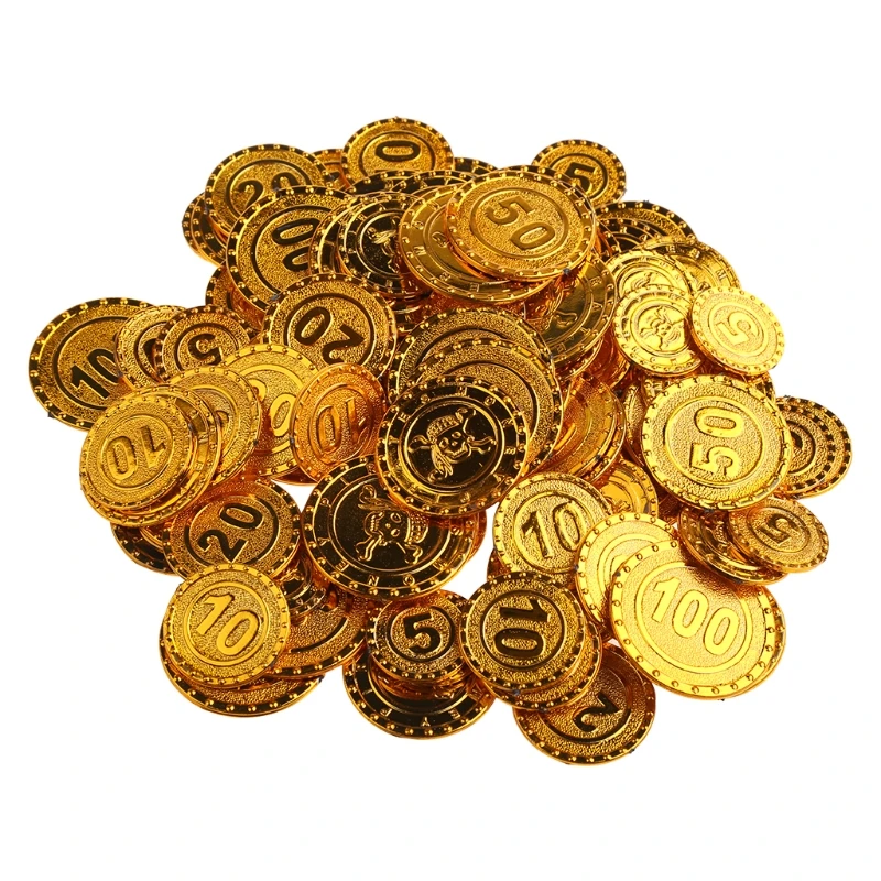 100 шт., пираты, золотые монеты, чип для торга, пластиковые игровые монеты для детей, вечерние товары, сокровища в виде монет, Рождественское украшение, детская игрушка