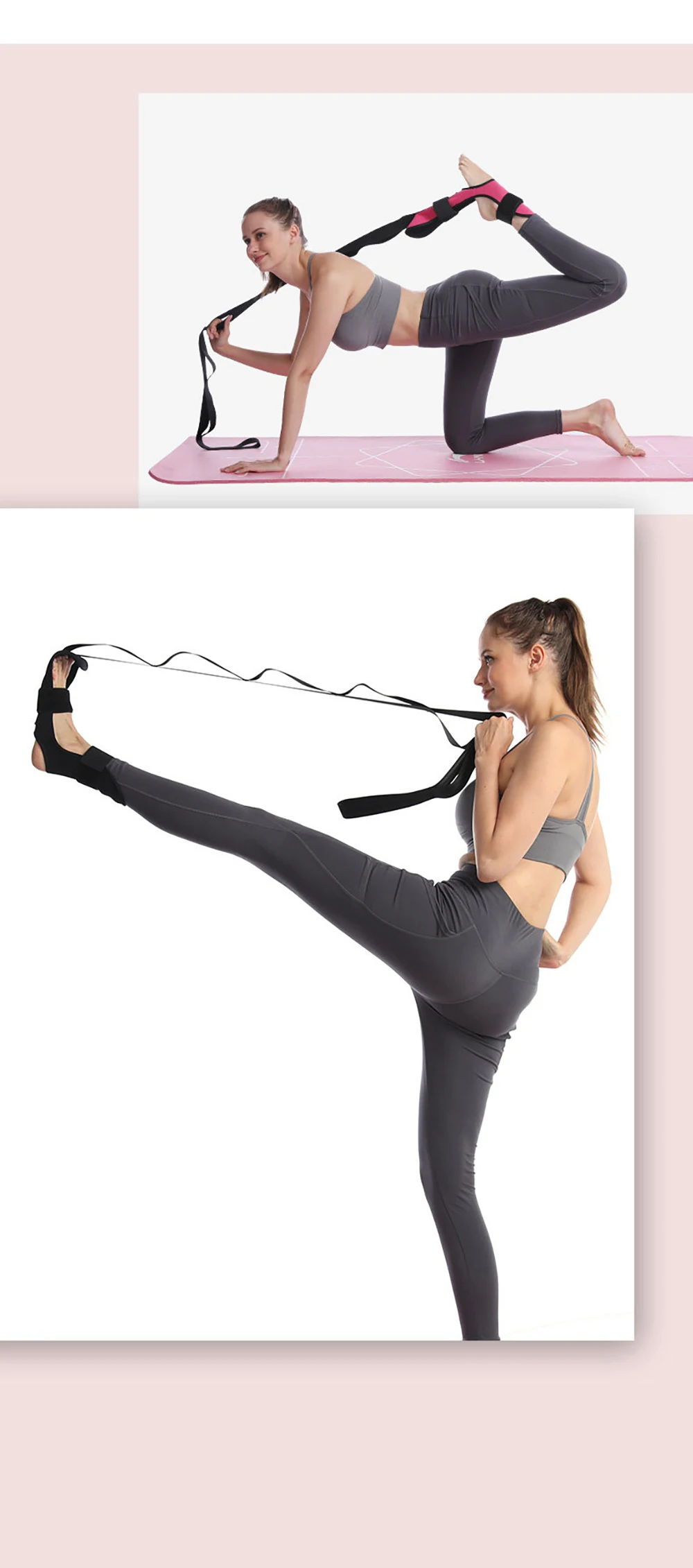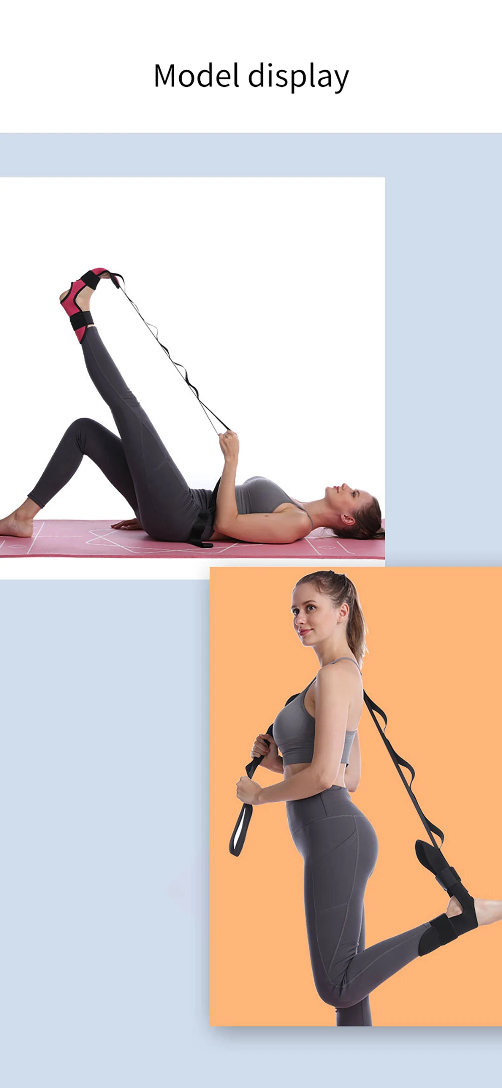 1. Этот пояс для йоги изготовлен из высококачественного полиэфирного хлопкового материала и обладает хорошей эластичностью при растяжении в классе йоги. Прочный и дышащий ремешок отличается прочностью и выдерживает широкий спектр применения.