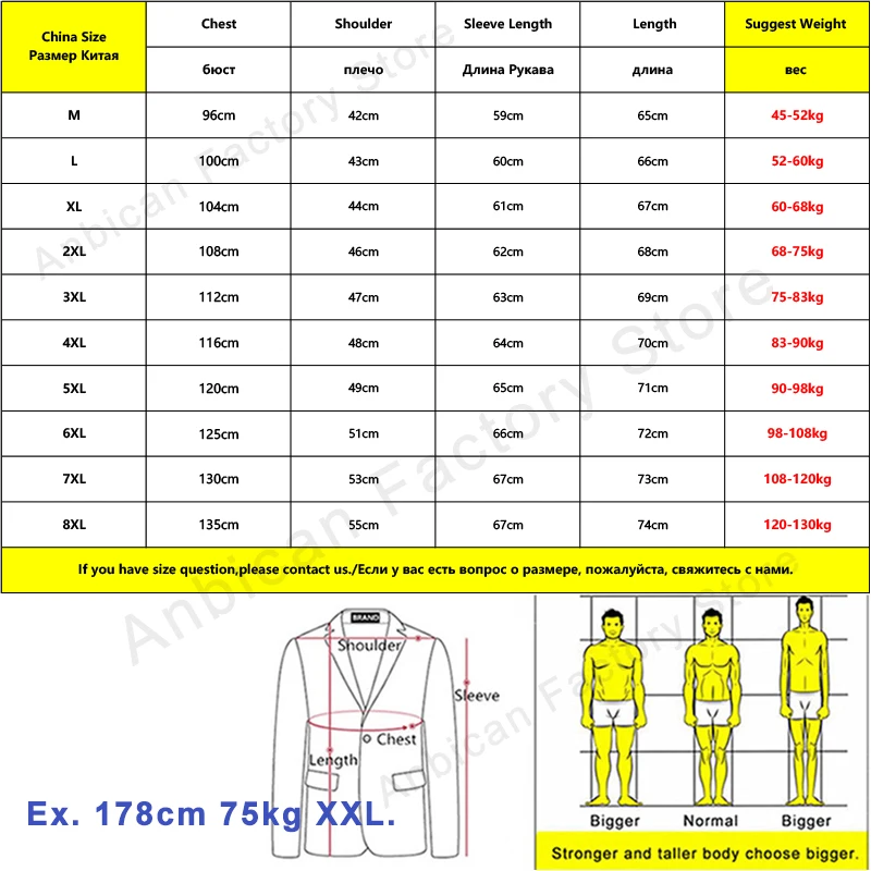 Таблица размеров (прочитайте перед заказом)