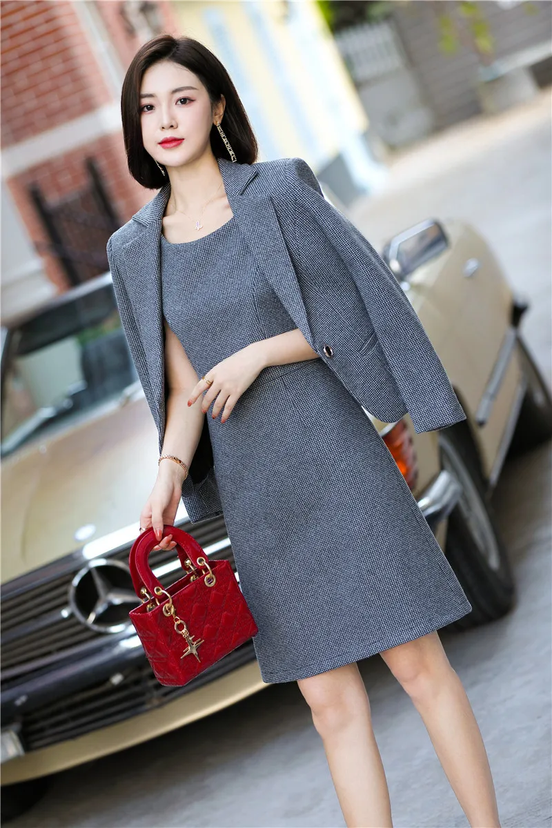 Отзывы о Женский деловой костюм из высококачественной ткани деловые костюмы с платьем и
