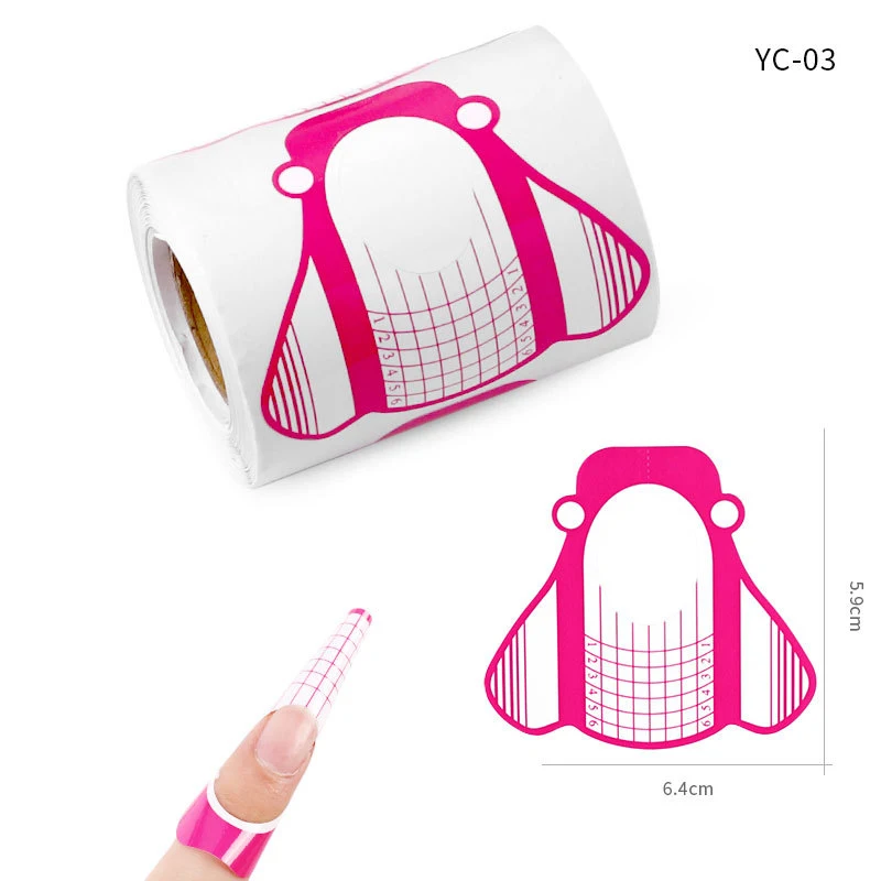 500 шт/рулон акриловых УФ-гелей для наращивания ногтей, кончики для наращивания ногтей, форма для ногтей, самоклеющаяся переводная бумага, направляющая форма для маникюра, французская Форма для ногтей