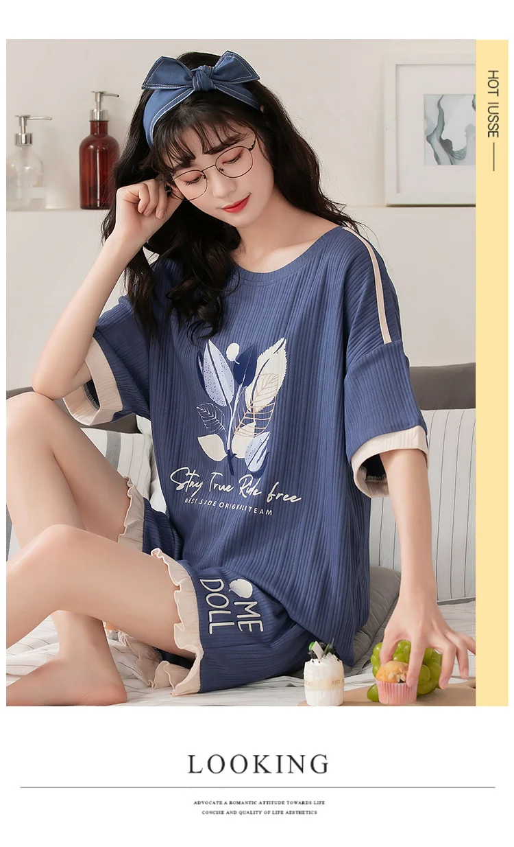 Отзывы о Женская тонкая летняя пижама из чистого хлопка с коротким рукавом | Мужская