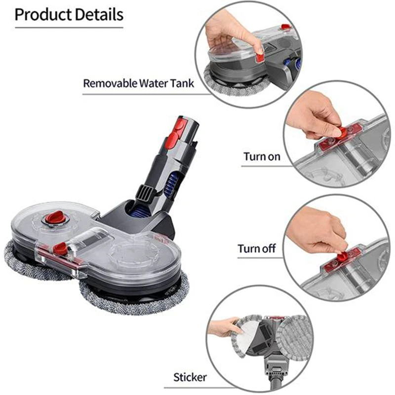 [2 в 1 чистящая головка для пылесоса]: с аксессуарами для уборки швабры, вы можете одновременно пылесосить и протереть пол. Электрическая щетка для швабры делает очистку оставшейся пищи более удобной и легкой. Dysen аксессуары для семьи с домашними животными, семьи с босиком, семьи с детьми.