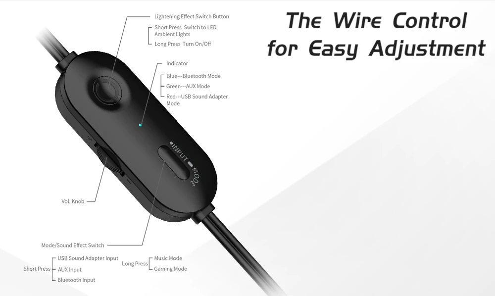 • Проводной контроллер включает вход, громкость, режимы звука и светильник