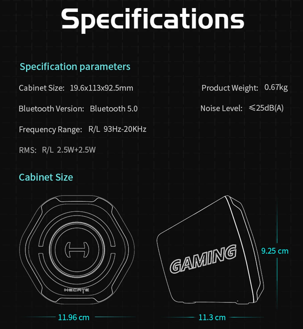 Детеныш футуристического дизайна и отличного качества звука наследует последовательную эстетику дизайна HECATE и стремление к качеству звука. 2,5 дюймов полный частотный диапазон, алюминиевом Задающий блок, мощностью 10 Вт и 15o высоты дизайн принимаются для того, чтобы удовлетворить игроков в погоне за дизайн продукта, качество звука и взаимодействия с пользователем.