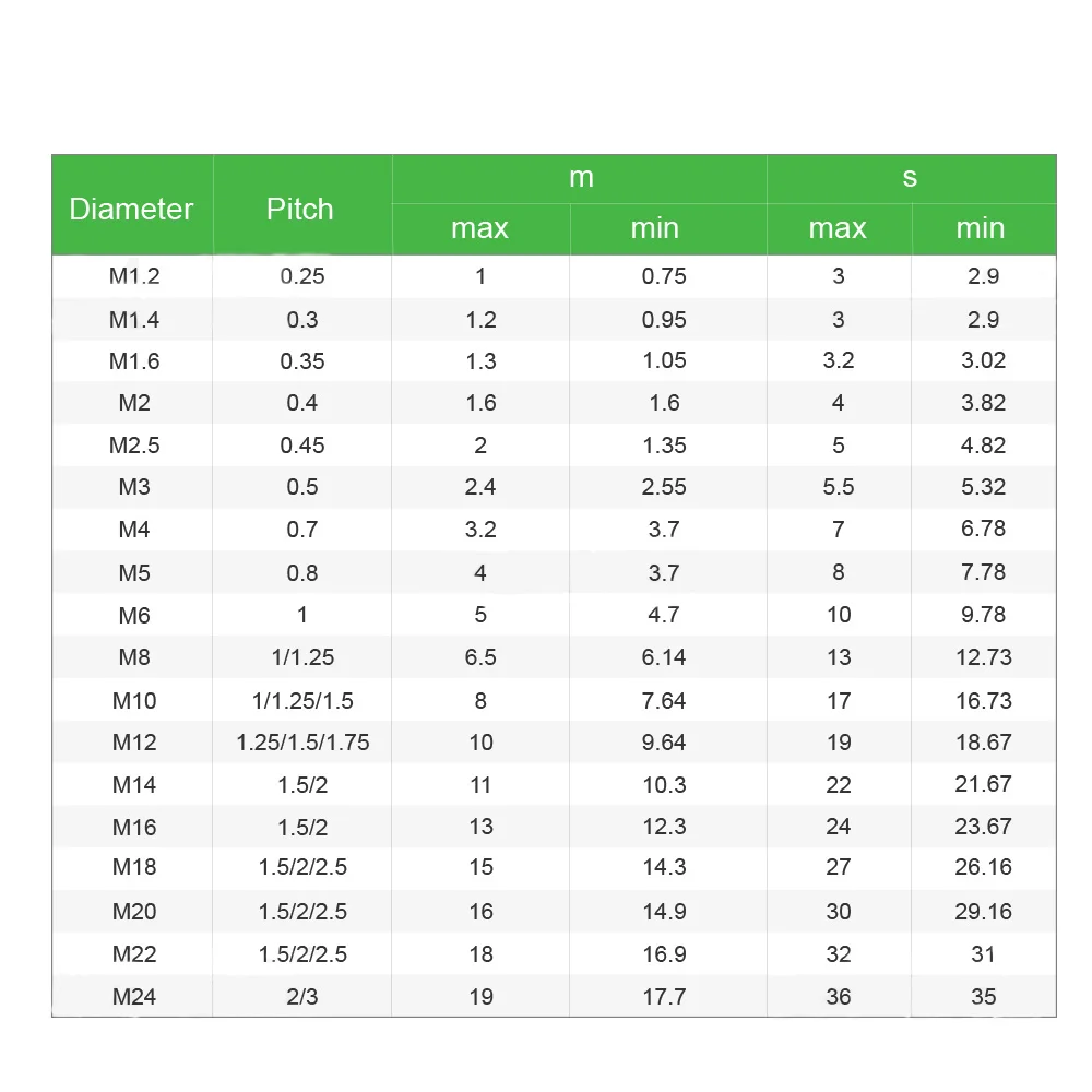 Номинал:M2 M2, 5 M3 M4 M5 M6 M8 M10 M12 M14 M16 M18 M20