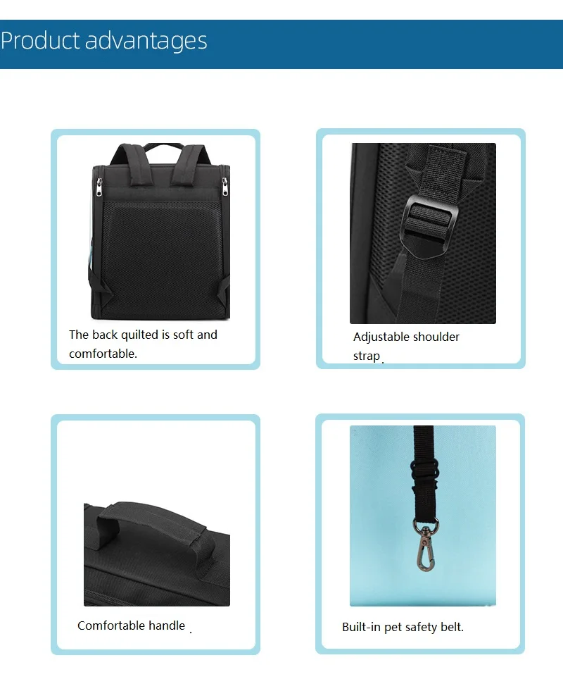 • Полные функции, отличное качество изготовления, превосходные материалы и отличное качество изготовления для домашних животных. Встроенный ремень безопасности обеспечивает безопасность.