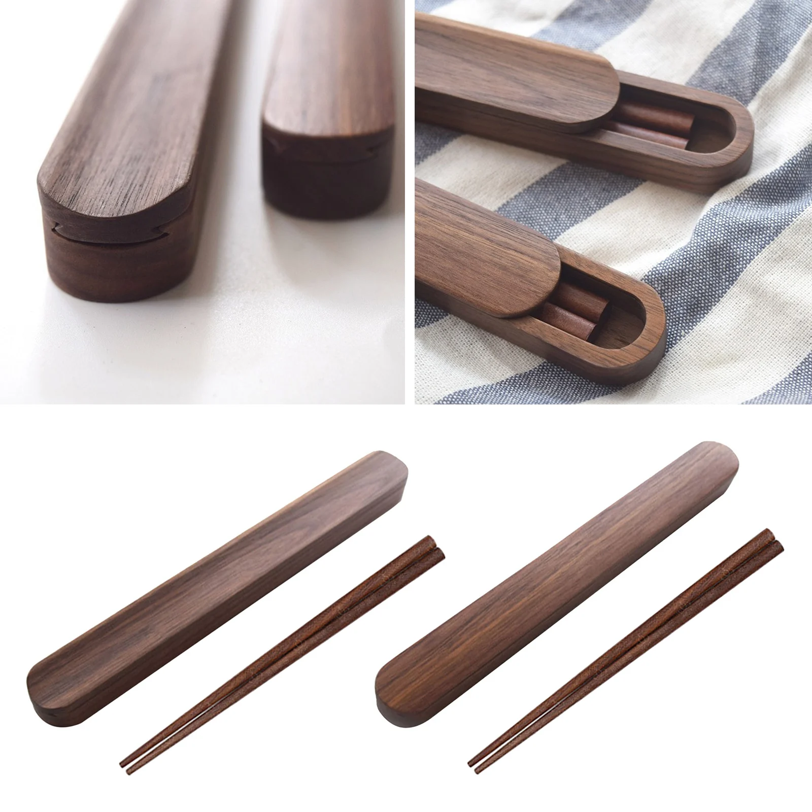 Портативный Черный Орех твердой древесины палочки для еды набор с коробкой чехол