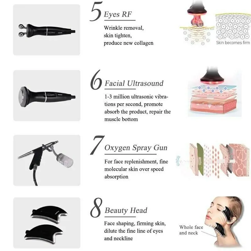 Многофункциональный большой пузырь оксиген 8 в 1 кислородная машина для лица удаление морщин оборудование для ухода за кожей и лицом для салона красоты