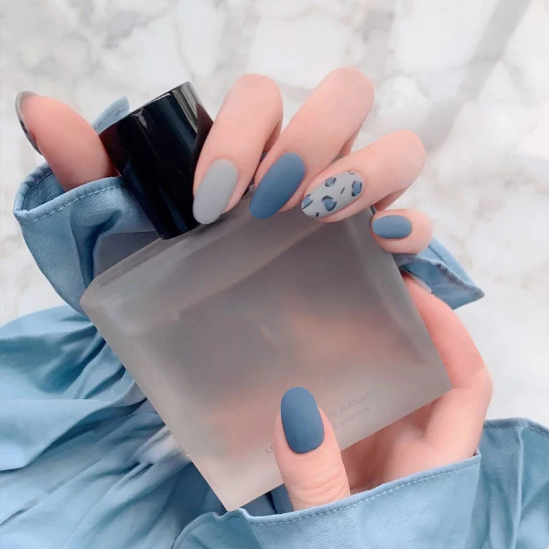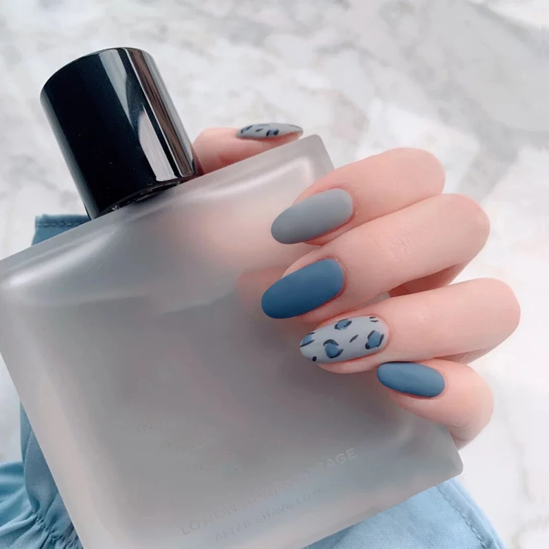 Отзывы о Матовые голубые накладные ногти с леопардом коровы 24 шт. искусственные полным