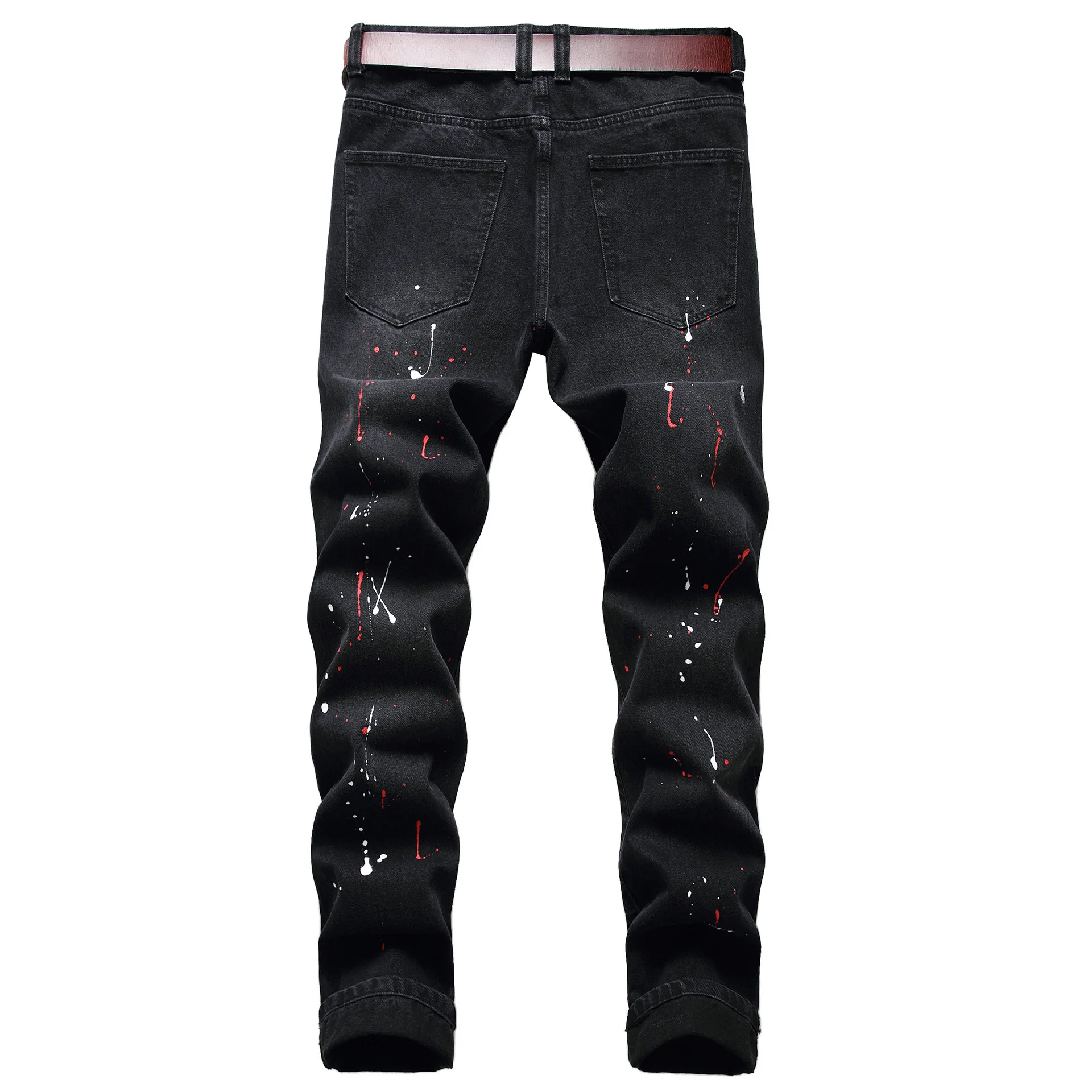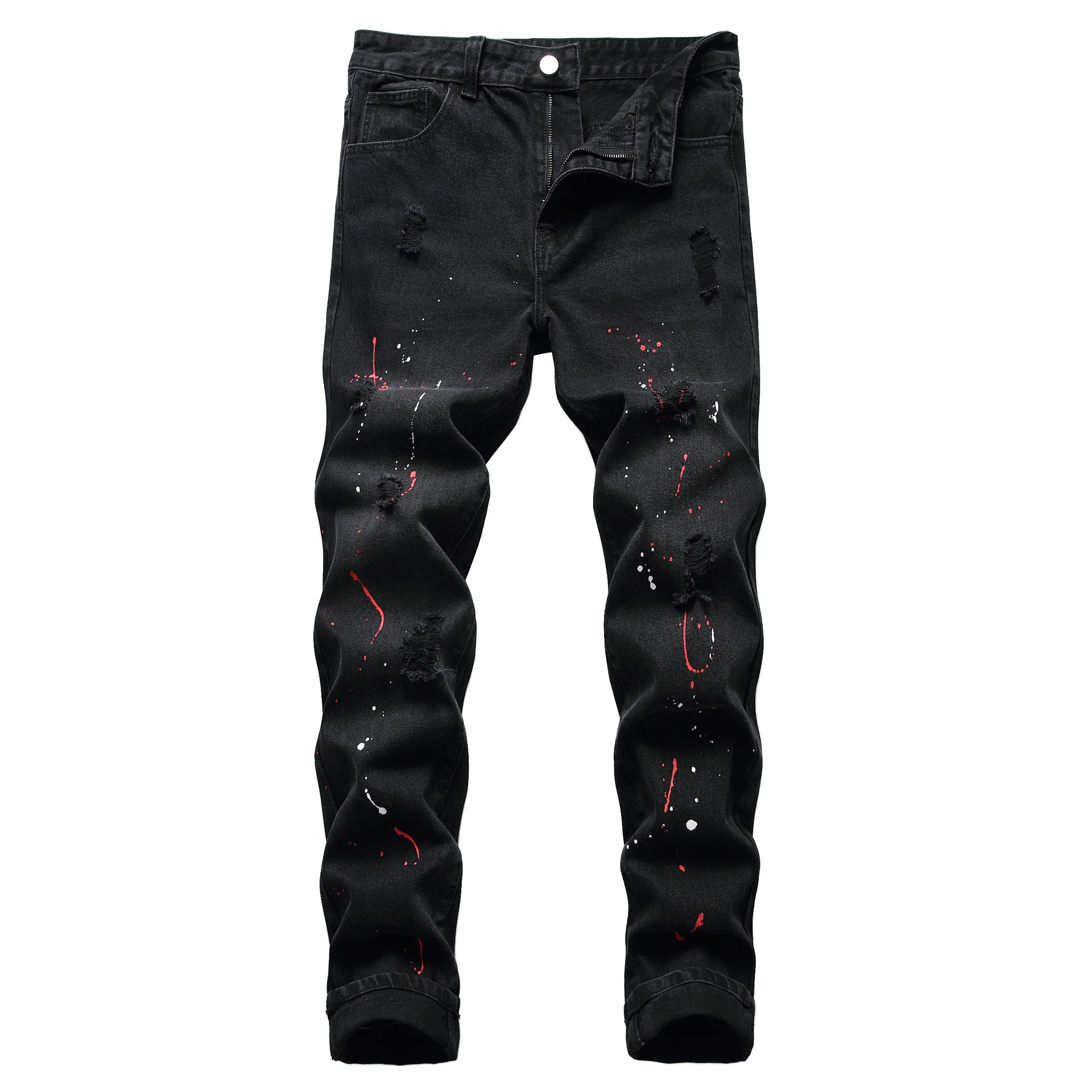 Отзывы о Мужские рваные джинсы с черным принтом прямые зауженные мужские черные