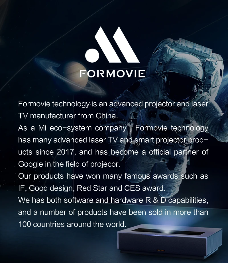 Это первый в мире ультра-короткий проектор с передовой технологией лазерного дисплея (ALPD), который обеспечивает до 150 дюймов 4K качественные изображения в 50 сантиметров, С чтобы обеспечить длительный срок службы до 25000 часов. Для достижения удобных для пользователя целей дизайна высокотехнологичный продукт использует компактный минималистичный язык дизайна «box» и тщательно поддерживает согласованность дизайна хоста и пульта дистанционного управления Bluetooth. В любом углу комнаты Управляйте хостом, голосовой помощник быстро находит программы и другие интерактивные способы для пользователя, чтобы принести новый опыт просмотра фильмов.