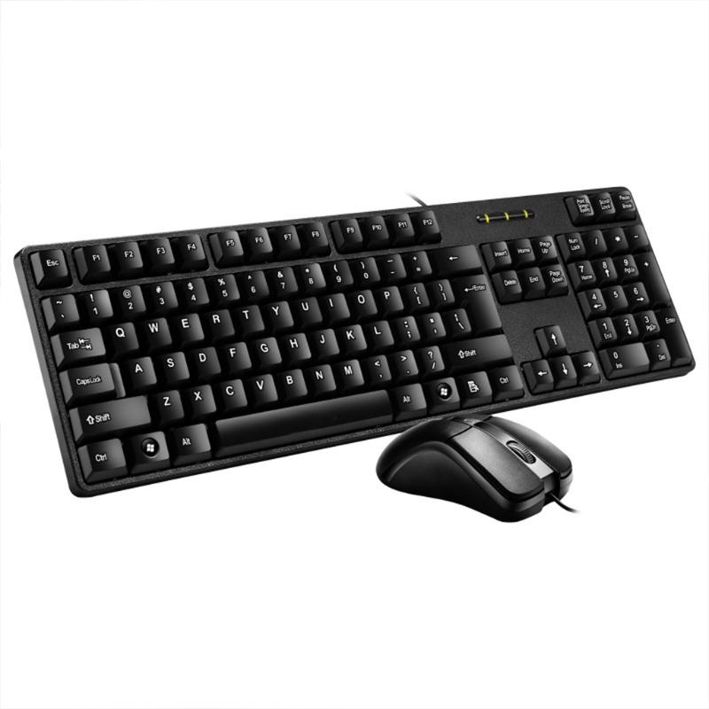 Тихая компактная Проводная компьютерная клавиатура и мышь комбо; Простое проводное usb-соединение, компактный размер идеально подходит для дома, офиса или общежития.