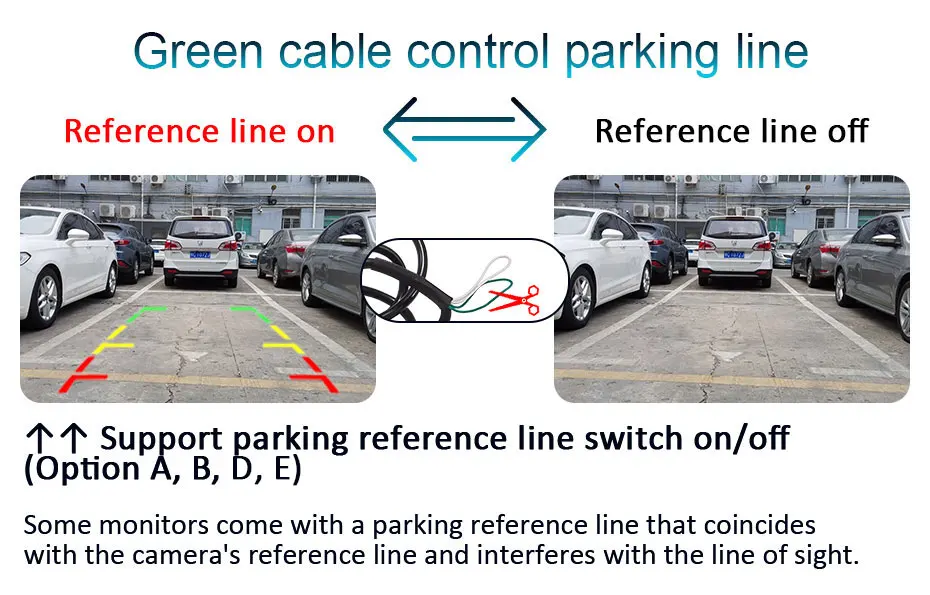 Некоторые мониторы поставляются с контрольной линией парковки, которая совпадает с контрольной линией камеры и препятствует линии видимости.