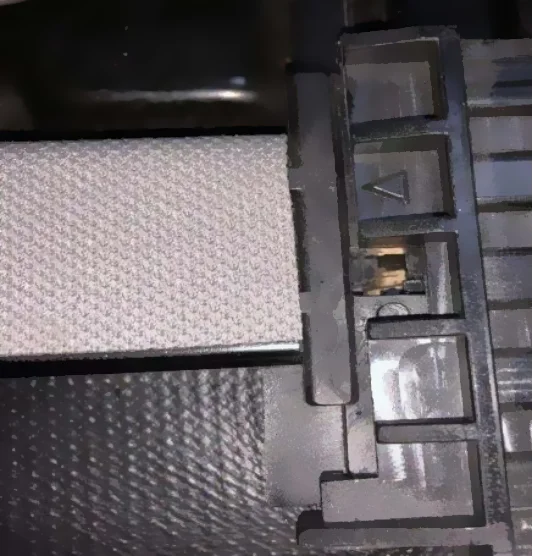 4. После того, как пружина войдет в дорожку и зафиксирует пластик, затем начните тестирование с помощью машины (Примечание: на полпути после операции, положите руки ниже обеих сторон теней ролика, а затем аккуратно нажмите вверх, чтобы определить, правильно ли Весна входит в дорожку. Если он не входит, весна выйдет. См. Изображение 4 и изображение 5).