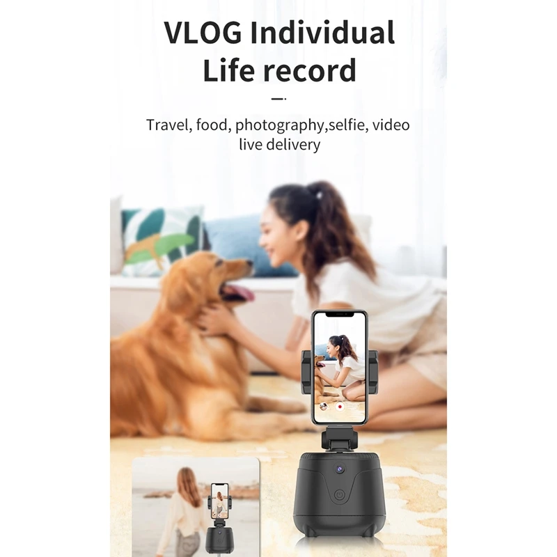 Full product features: real-time visual follow, 360-degree rotation, face follow