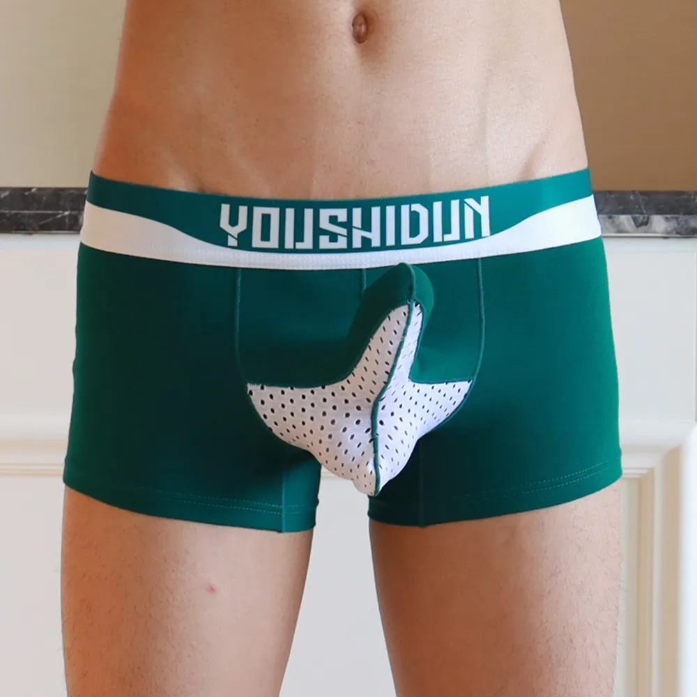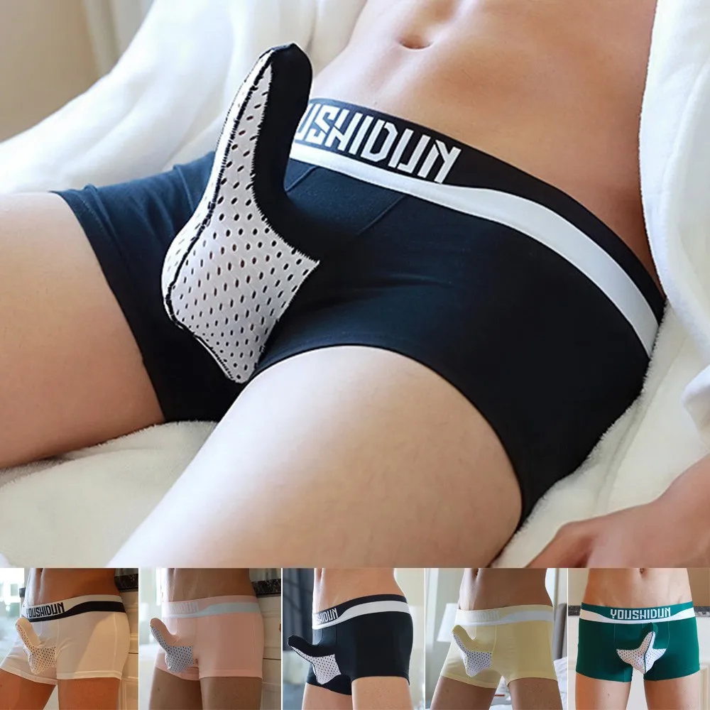 Мужское нижнее белье с рукавом для пениса, сексуальные мужские хлопковые шорты-боксеры, дышащие сетчатые шорты, мужские спортивные шорты, Эротические трусики со слоном в носу