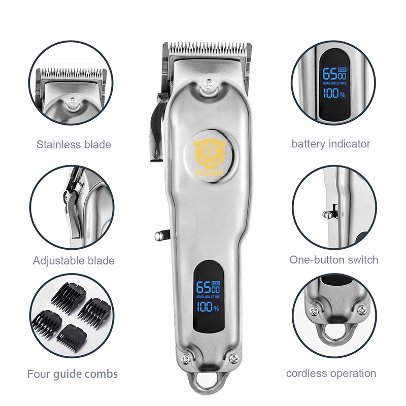 FITIGER 10 шт. концевые расчески цельнометаллическая машинка для стрижки волос для мужчин перезаряжаемый триммер для волос Парикмахерская Беспроводная Машинка для стрижки волос 10 Вт
