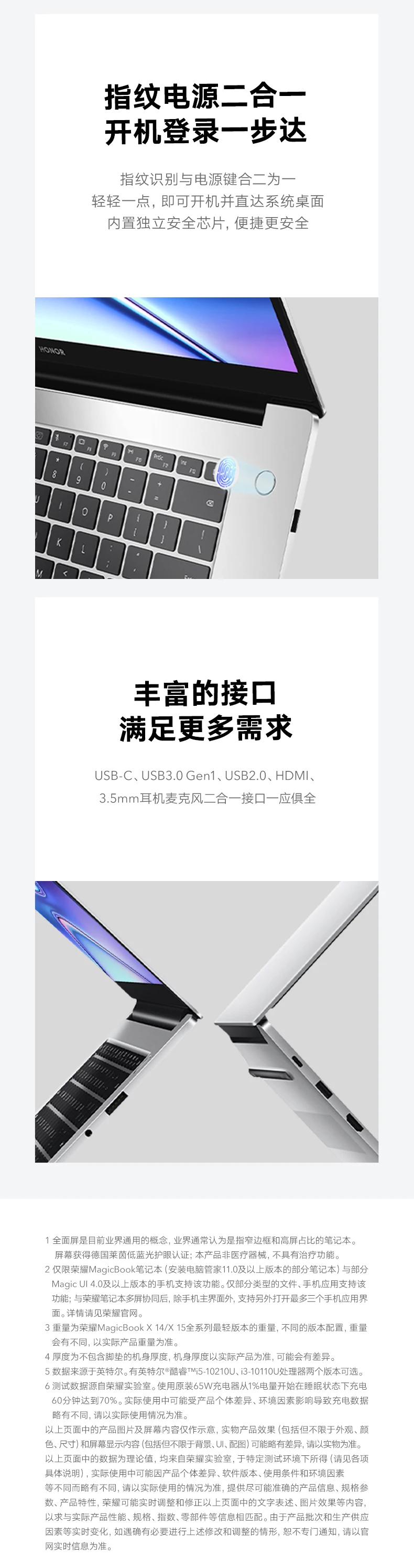 Отзывы о Новый ноутбук Honor MagicBook X14 2021 14-дюймовый ультрабук Intel i3/i5 256 ГБ/512 ГБ SSD отпечаток