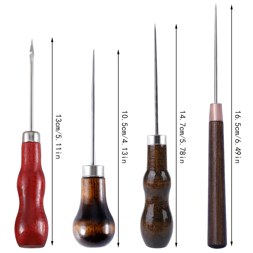 LMDZ 4 шт., инструмент для шитья шило с деревянной ручкой, инструмент для пробивания шило для кожаных мешков, отверстий, ручной работы, инструмент для ремонта обуви