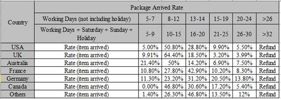 - Время доставки зависит от работы транспортной компании, таможни и почты пункта назначения, а также от других факторов. Большинство посылок может быть получено через 20 рабочих дней (4 недели). Смотрите ниже информацию о времени доставки и количественных данных:
