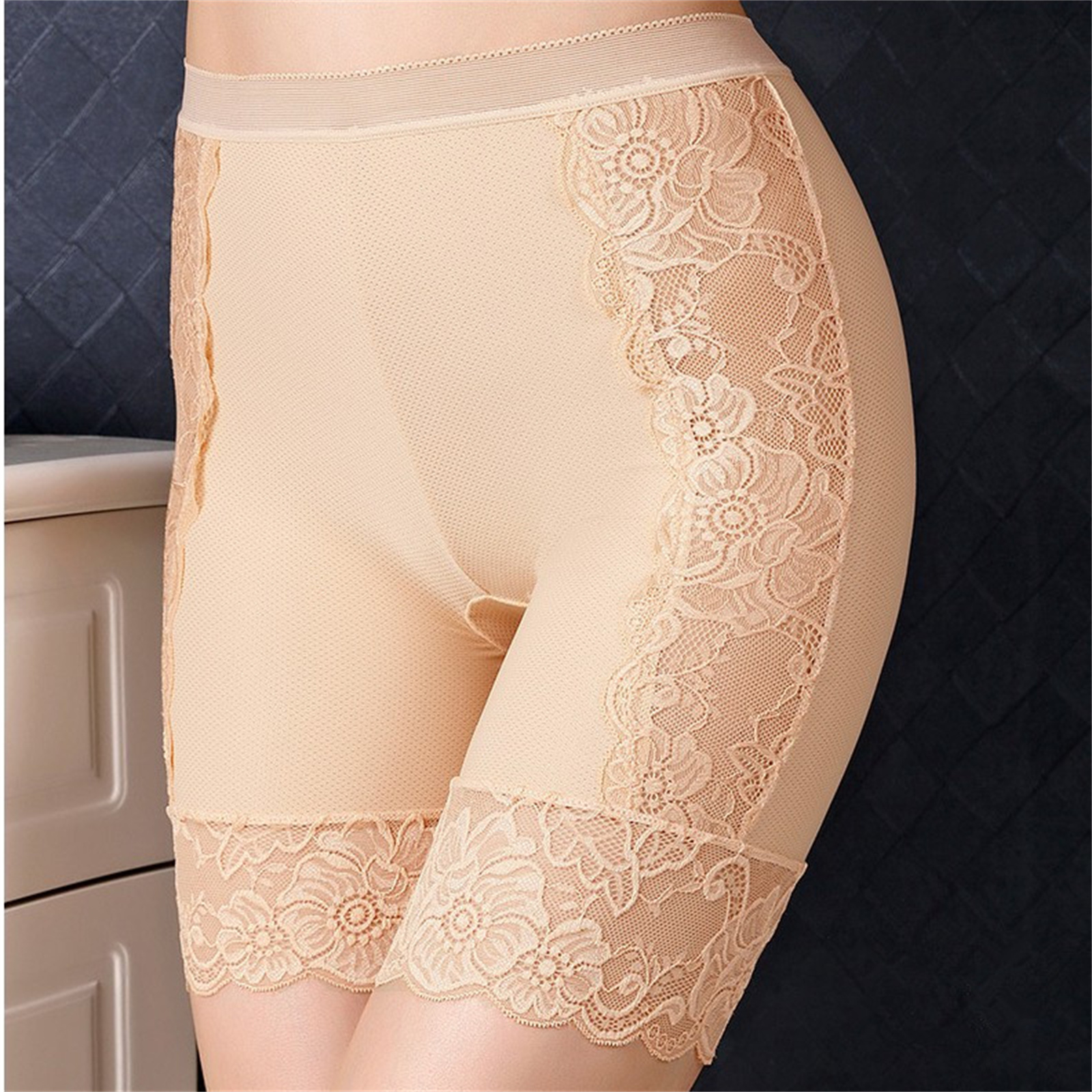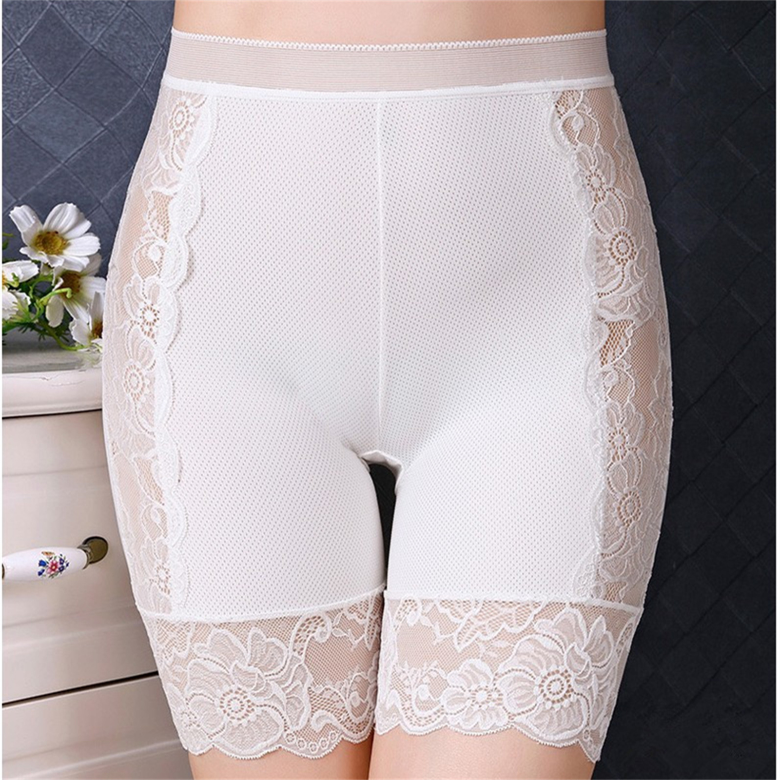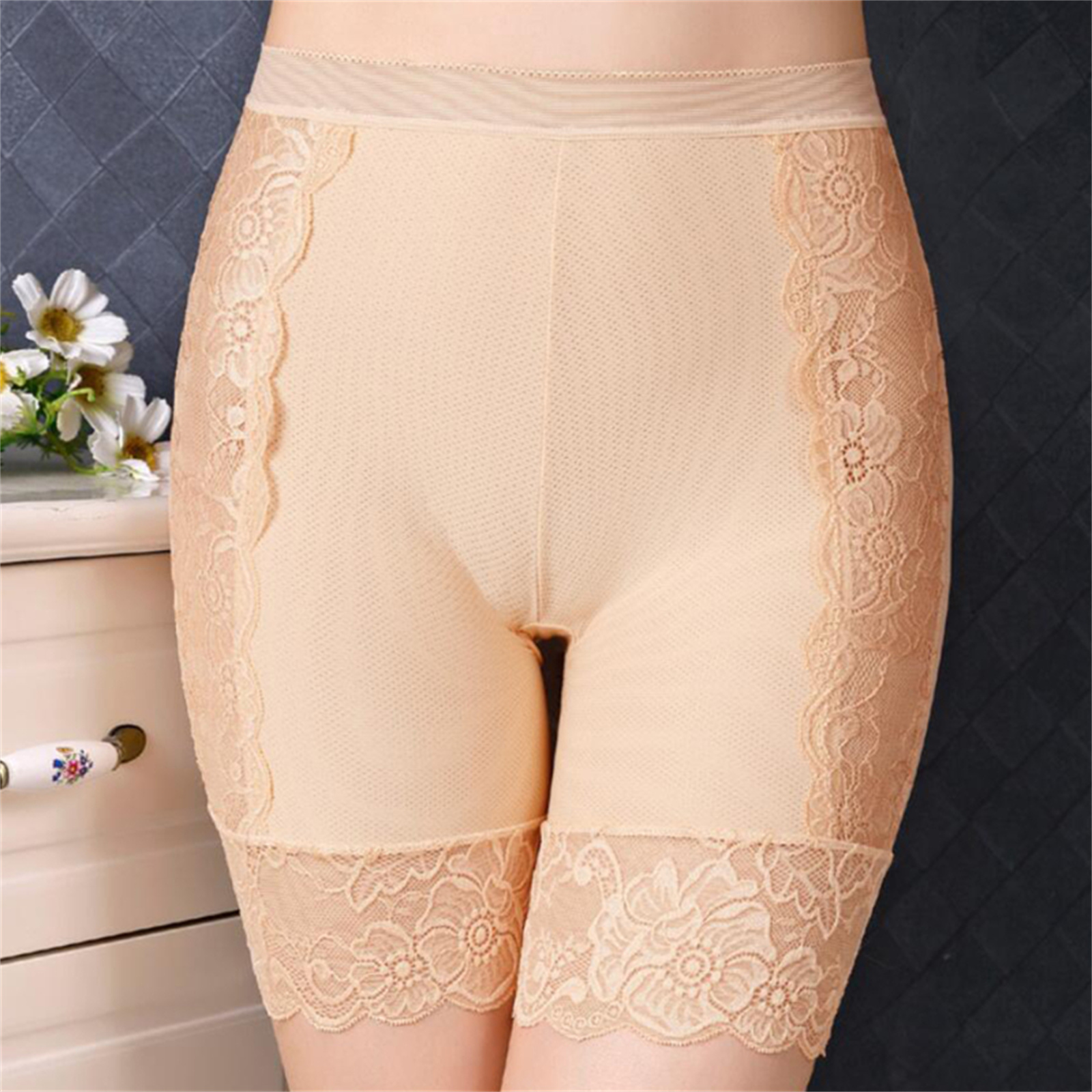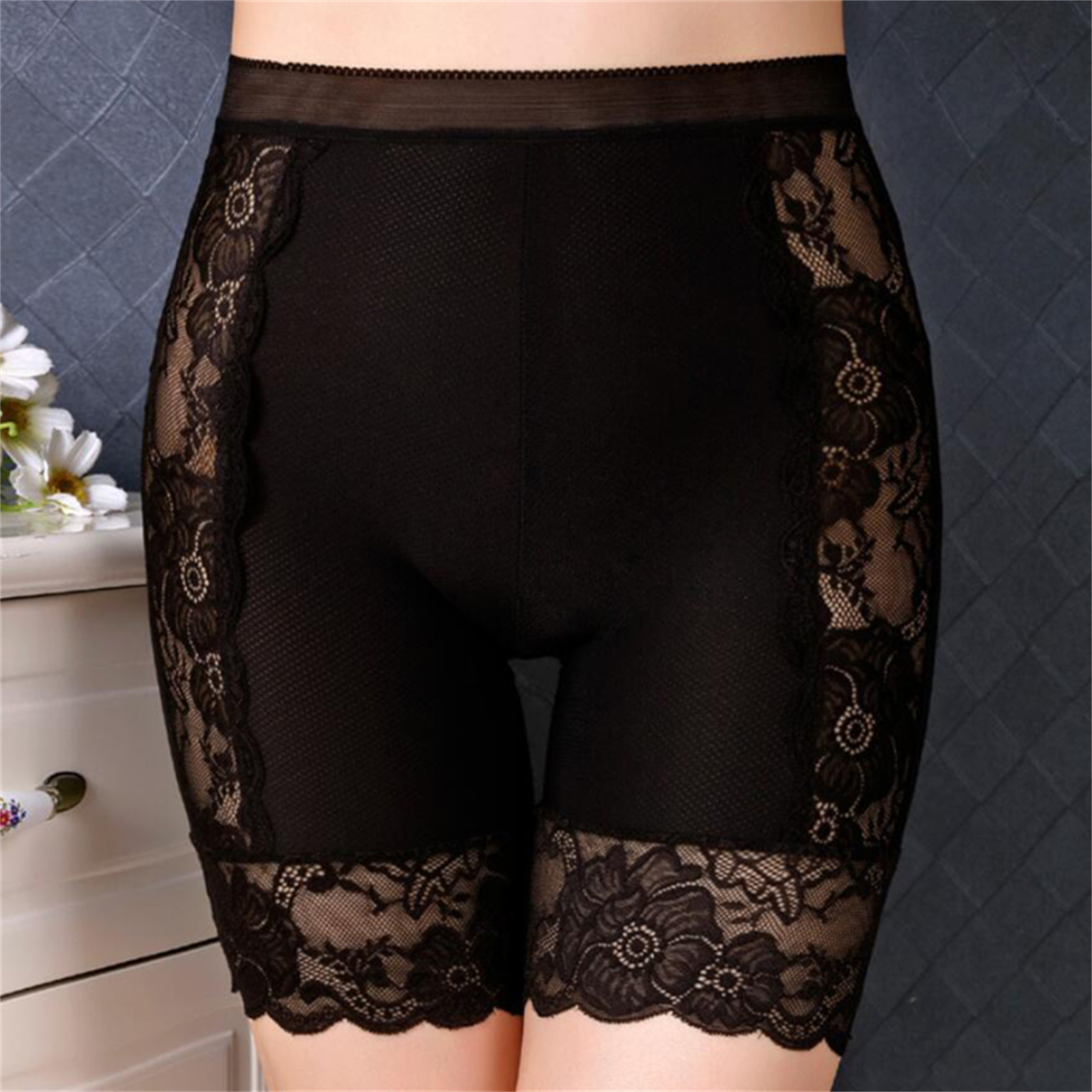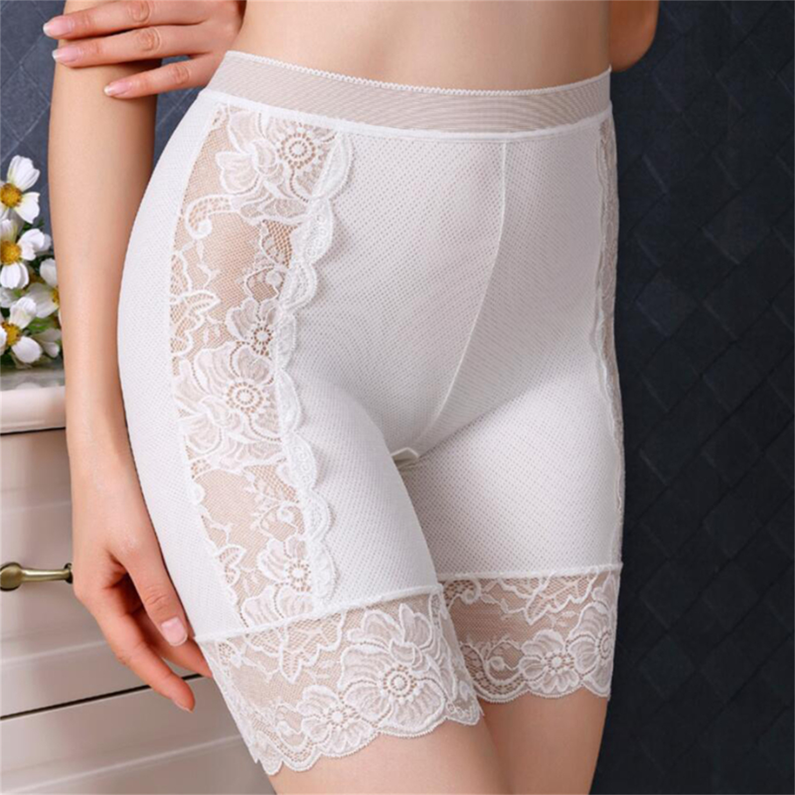 Женские кружевные шорты с цветочным рисунком, средней талией, длиной до бедра, короткие леггинсы с эластичным поясом, нижнее белье.