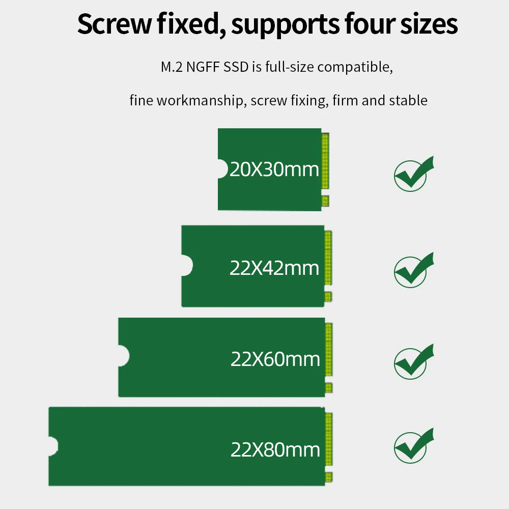 3. Фиксированный винт, поддерживает четыре размера, M.2 NGFF SSD полностью совместим, тонкая работа, фиксация винтов, прочная и стабильная