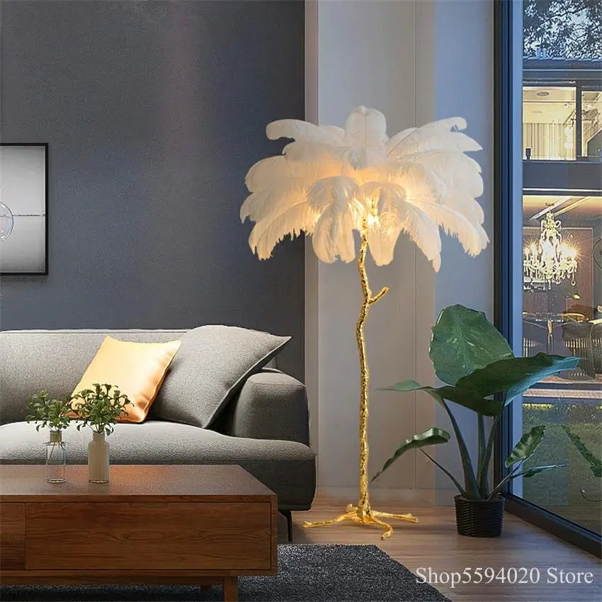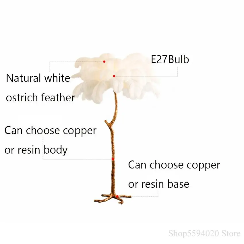 Отзывы о Современная роскошная медная лампа из страусиного пера и смолы напольная в стиле