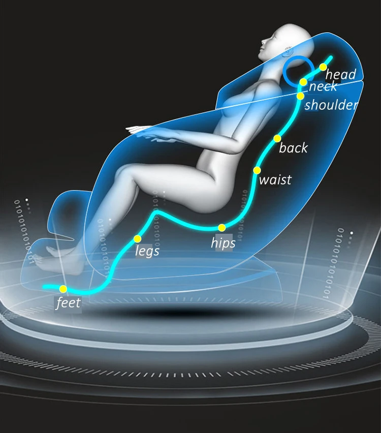 2) Кривая SL, от шеи до ног, Адаптивная Массажная головка, подходит для человеческого тела, с высокочастотным вибрационным массажем бедер, более комфортным;