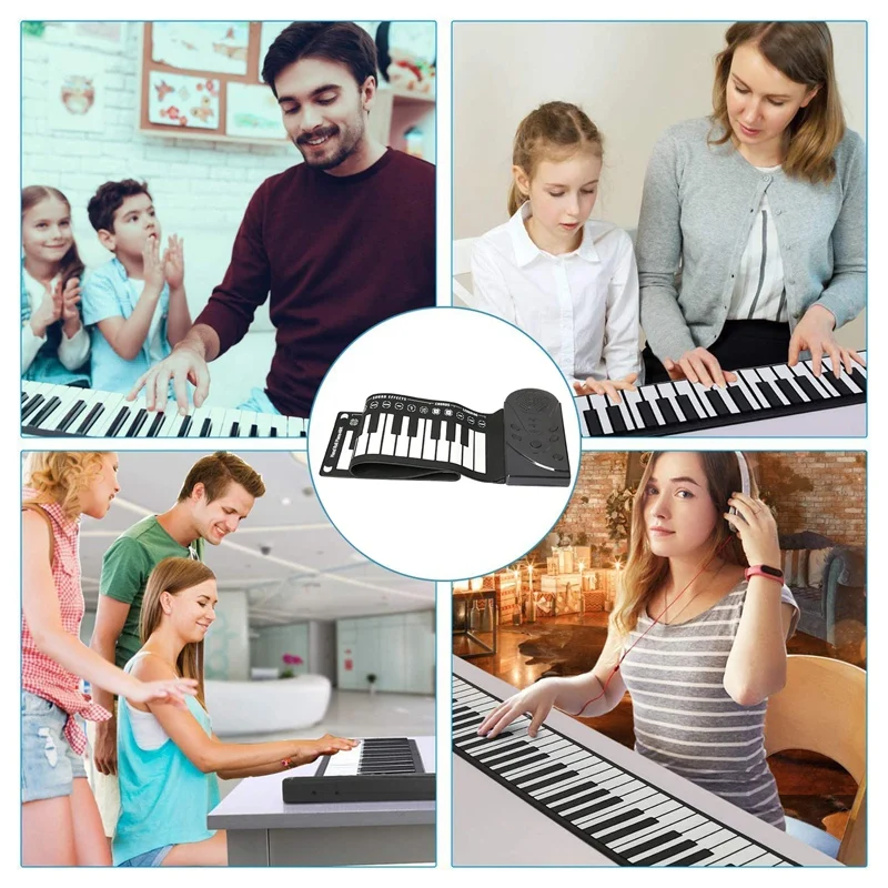 [Идеальная практика фортепиано клавиатура для начинающих]: 49 стандартных клавиш позволяет играть тонну музыки, не занимая места. Силиконовое пианино также включает в себя несколько мелодий клавиатуры и демонстрационных песен, запись и воспроизведение, эхо/поддержка, встроенный динамик с регулятором громкости и аудиовыход (для наушников или динамиков) для того, чтобы вы могли воспроизводить его врасплох или тихо.