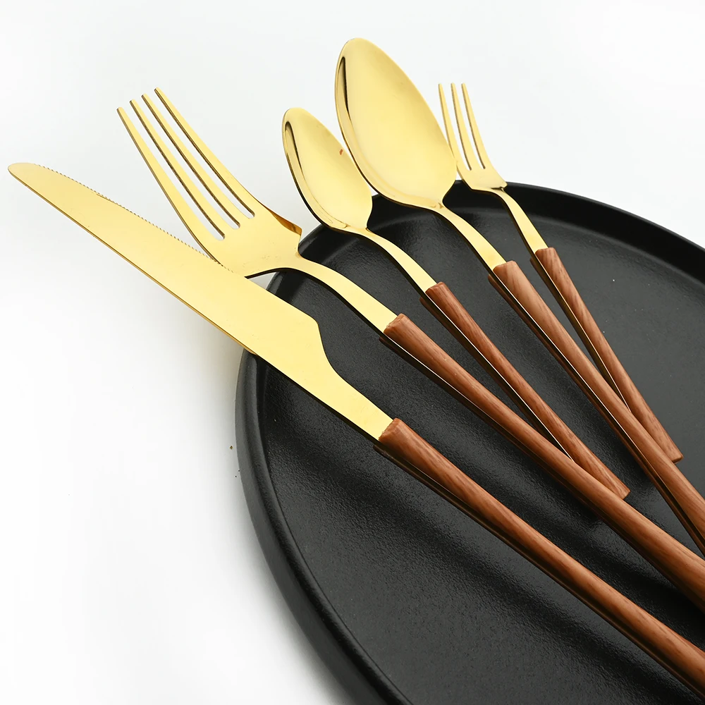 Отзывы о Женская зеркальная посуда с деревянной текстурой Западная еда нож вилка резаки