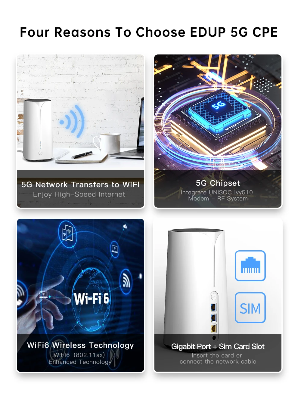 Отзывы о Умный беспроводной маршрутизатор EDUP 5G CPE Wifi6 двухдиапазонный с поддержкой Wi-Fi