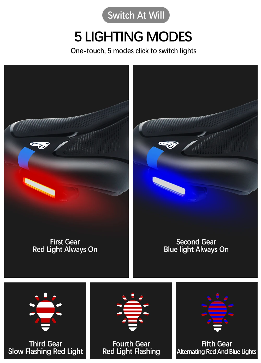 Отзывы о Седло для горного велосипеда с Предупреждение ющим стоп-сигналом и USB-зарядкой |