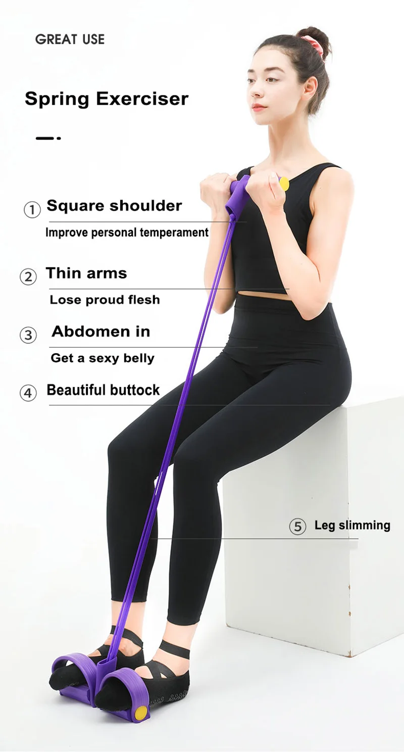 4 трубки веревка для натяжения сильный Фитнес Сопротивление полоса педаль для женщин и мужчин Эластичный сидеть вверх тянуть веревки дома тренажерный зал спортивный поезд оборудование
