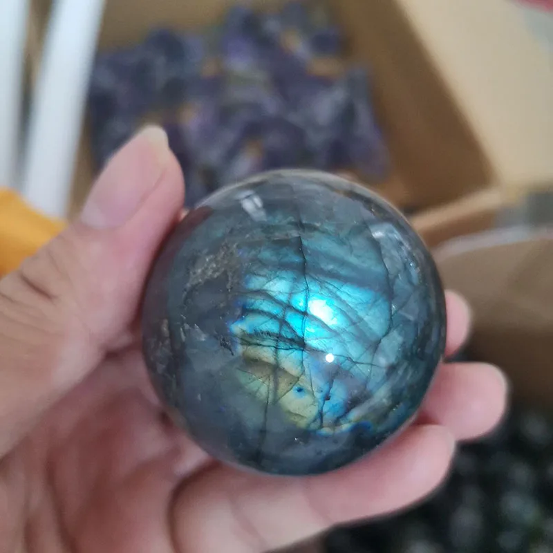 Название продукта: Хрустальный шар лабрадорита Материал: 100% натуральный кварцевый хрустальный камень О размере: 40 мм/45 мм/50 мм/60 мм/70-80 мм Уровень: AAA + (высокое качество) Характеристики: полированный; Глянцевый Цвет: как на фото Moq: 1 шт. Форма: шар (как на картинке) Примечание: без базы