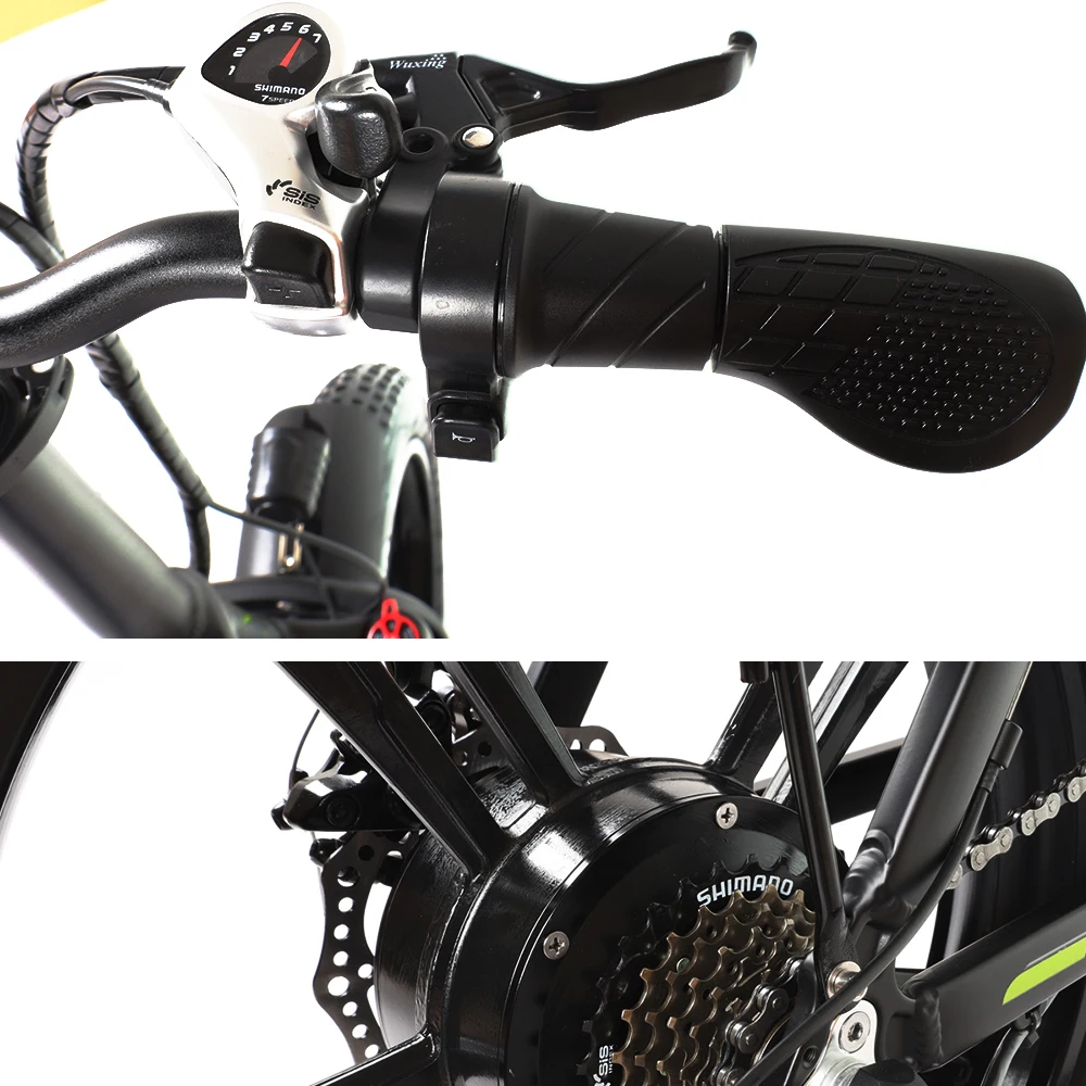 7 скоростей Shimano, вы можете выбрать любую скорость, чтобы наслаждаться более быстрой поездкой или расслабляющим отдыхом в соответствии с вашими потребностями. Идеальные тормоза полностью защитят вашу безопасность и идеальную способность подъема.