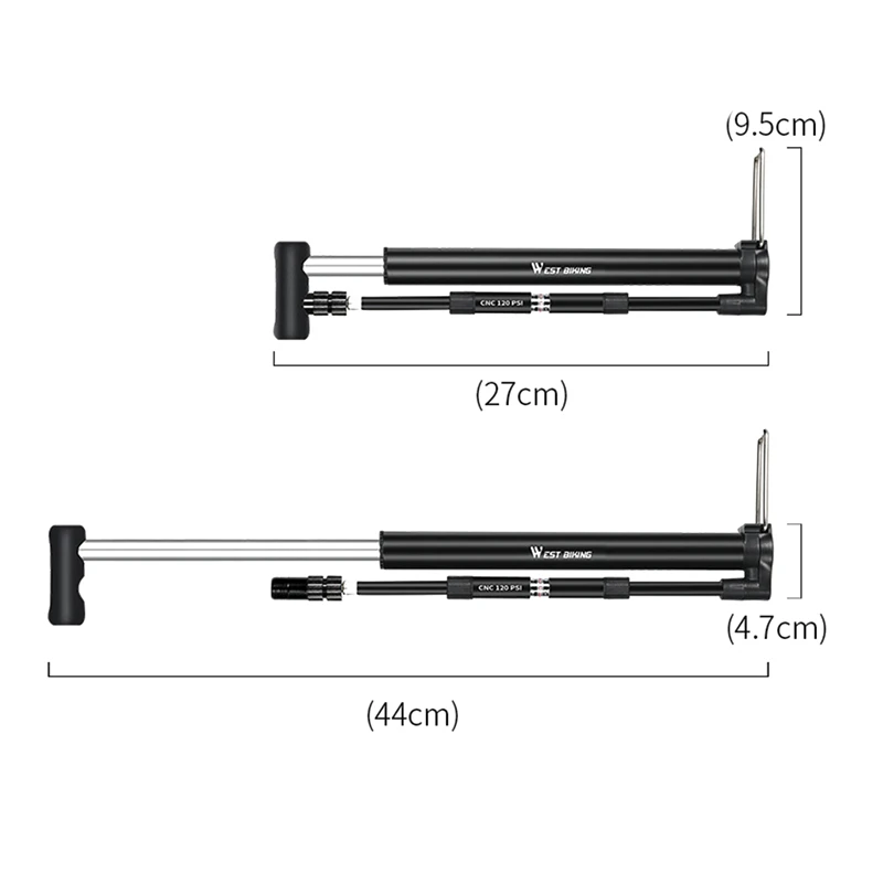 Размеры: Длина в расправленном виде: 44 см, Длина после сжатия: 27 см, ширина дна: 4,7 см, нижняя часть + ширина стопы: 9,5 см