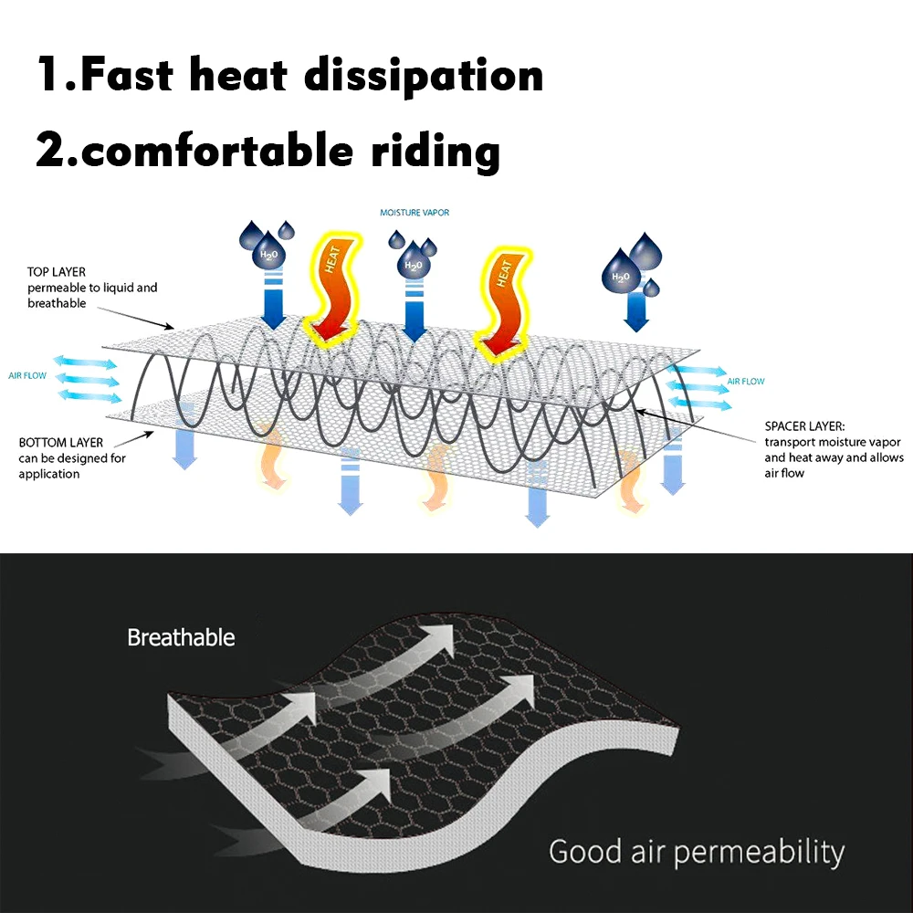 Этот чехол для сиденья-это кондиционер для вашего оригинального сиденья мотоцикла. Воздух может циркулировать во время вождения, потому что крышка трехмерная. Даже при большом весе, он не может быть полностью сжатым: это не только обеспечивает воздухопроницаемость, но и сохраняет ваши ягодицы сухими, когда идет дождь. Крутой чехол не нагревается даже при прямых солнечных лучах. Еще один плюс: это создает массажный эффект и тем самым уменьшает признаки усталости.