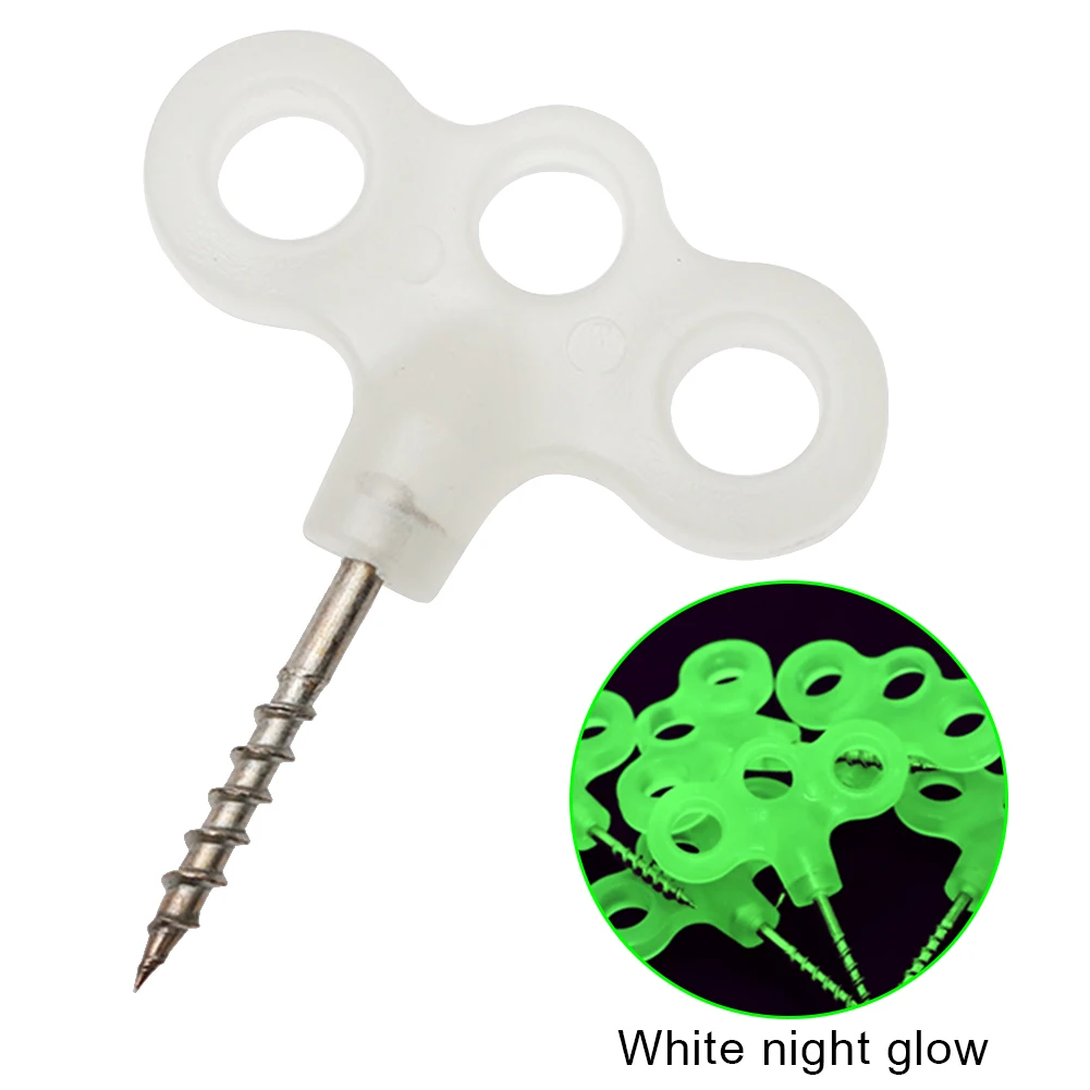 10 шт. люминесцентные винтовые колышки для палаток из нержавеющей стали, трехглазые, наружные, для кемпинга, колода, крючок для гвоздей, веревка, крепеж, принадлежности для палаток