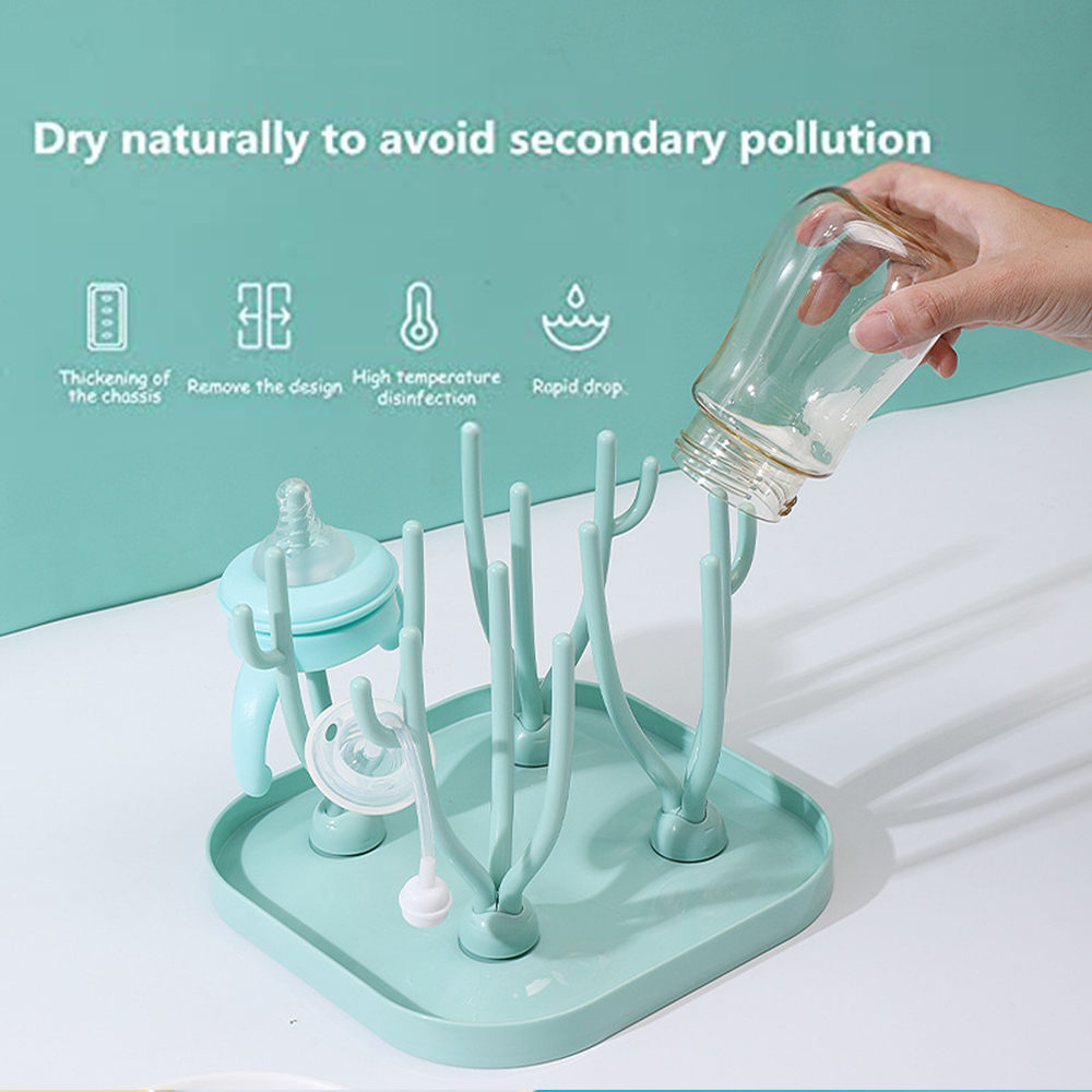 Бутылки для молока и другие аксессуары естественным образом высушиваются, чтобы избежать вторичного загрязнения и вреда для ребенка. Сушилка для сушки с защитой от переворачивания, Избегайте попадания бутылки молока даже вниз. Для здоровья и безопасности ребенка, обратите внимание на сушильные работы после очистки бутылки.