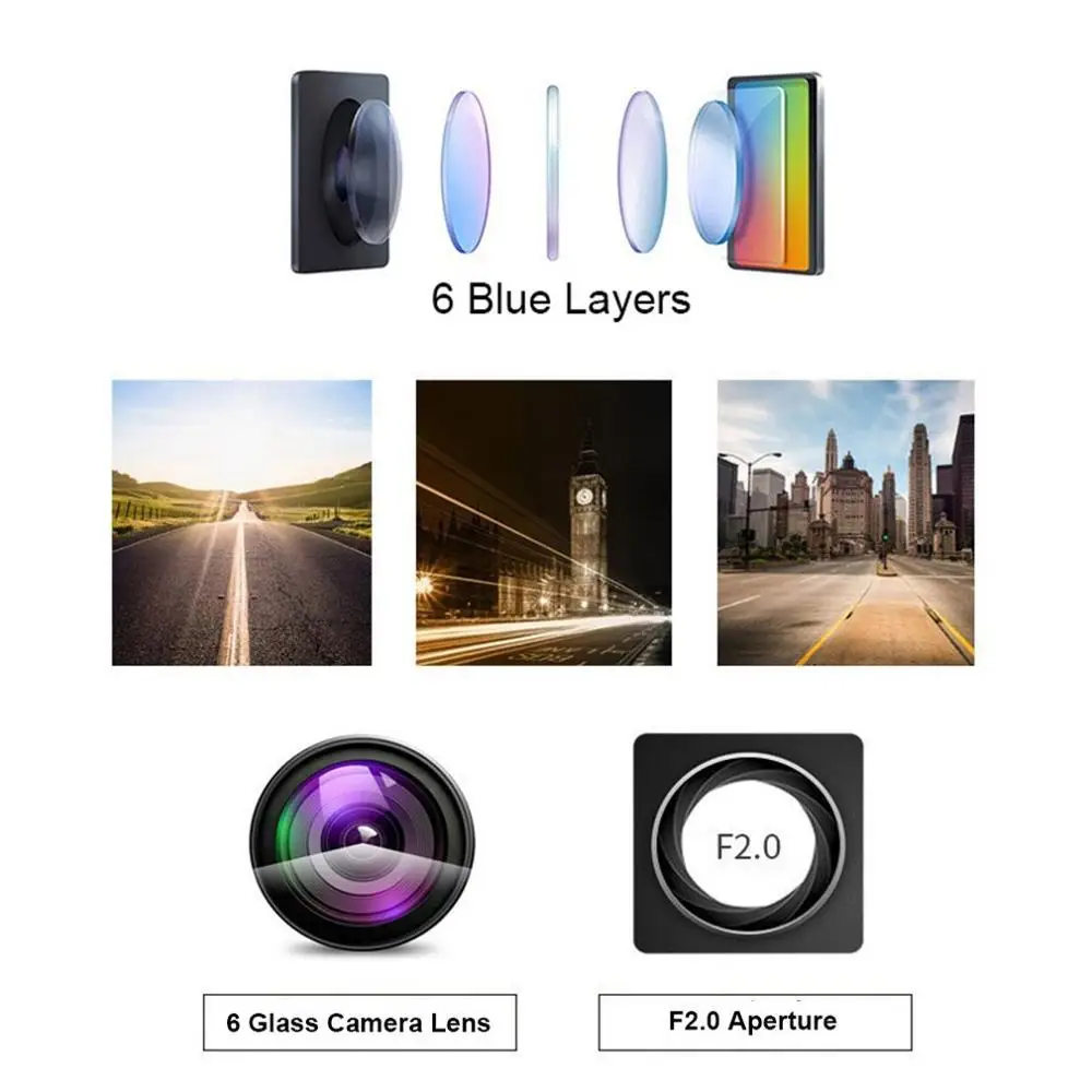 5. Широкий угол 170 °, камера заднего вида, функция g-датчика. Встроенный датчик гравитации. Функция обнаружения движения и парковки.