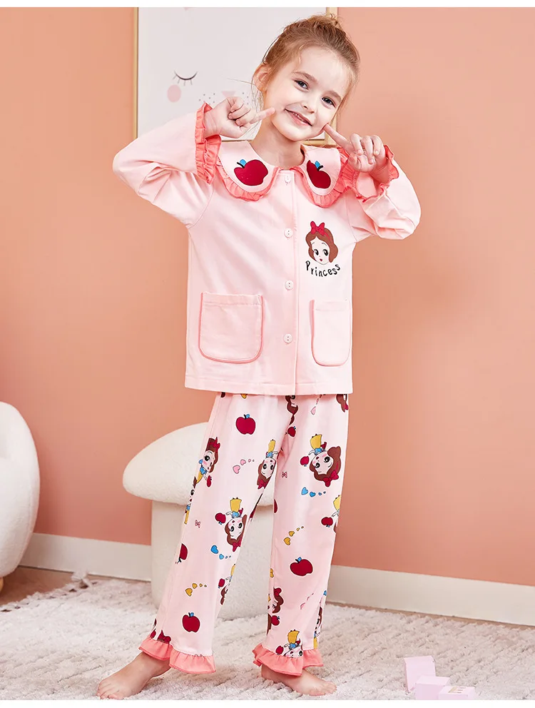 Отзывы о Пижамы для девочек Осенняя детская Домашняя одежда комплекты одежды хлопковая