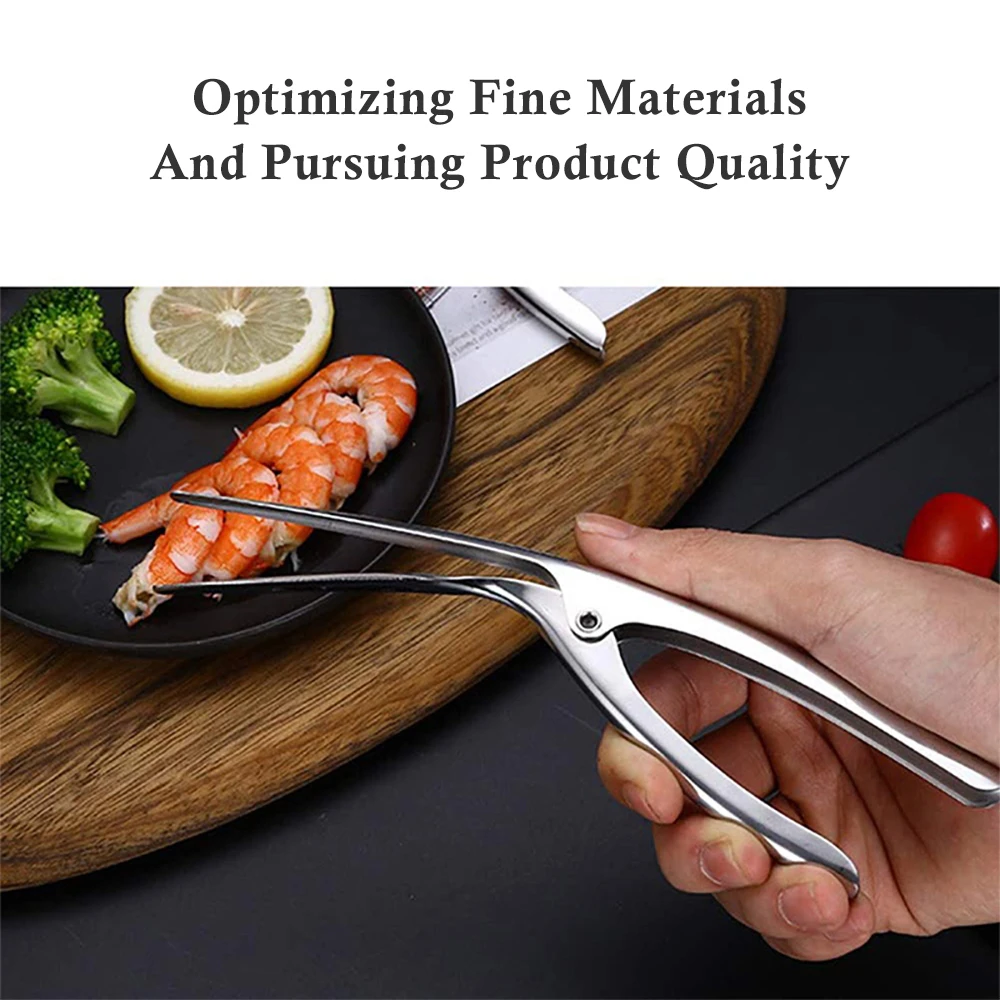 4. Способ использования: вставьте закрытый наконечник креветки в верхнюю часть оболочки. Аккуратно нажмите на наконечник (все еще закрыт) под оболочкой, пока он не выходит за хвост. Удерживайте ручки вместе, пока креветки и оболочка не будут отделены. Краску креветки под холодной водой