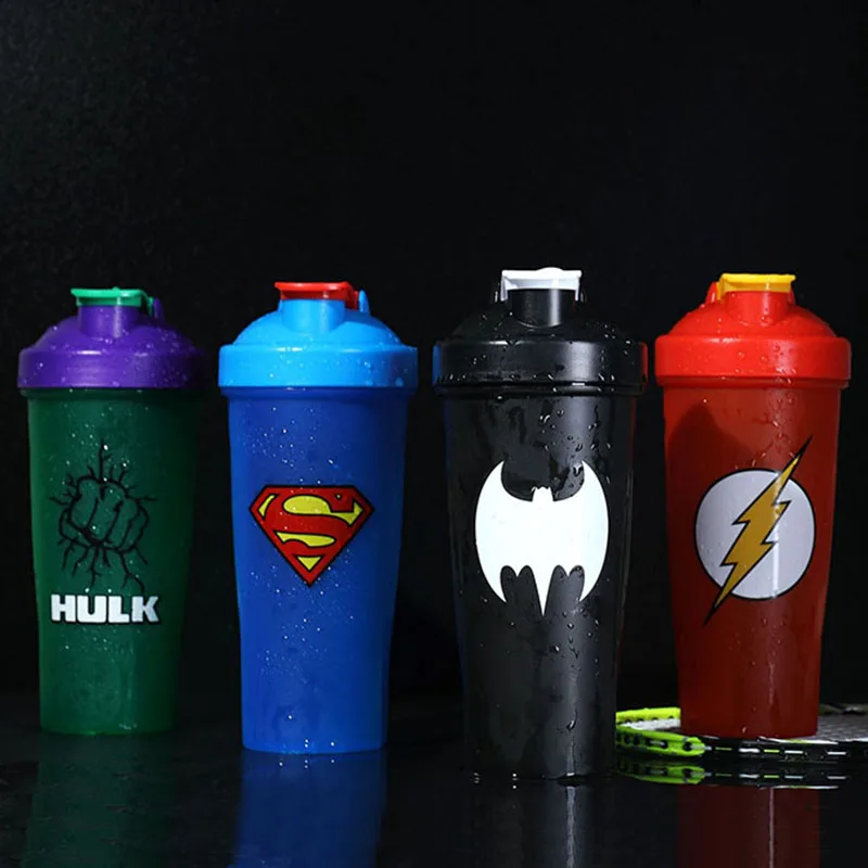600ML протеин порошок шейкер бутылка super hero бутылки воды спорта на открытом воздухе стакана воды большой емкости чайник без добавления бисфенола А
