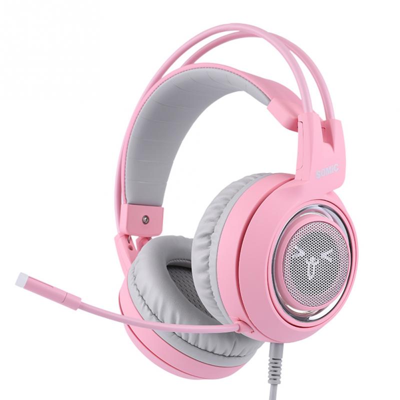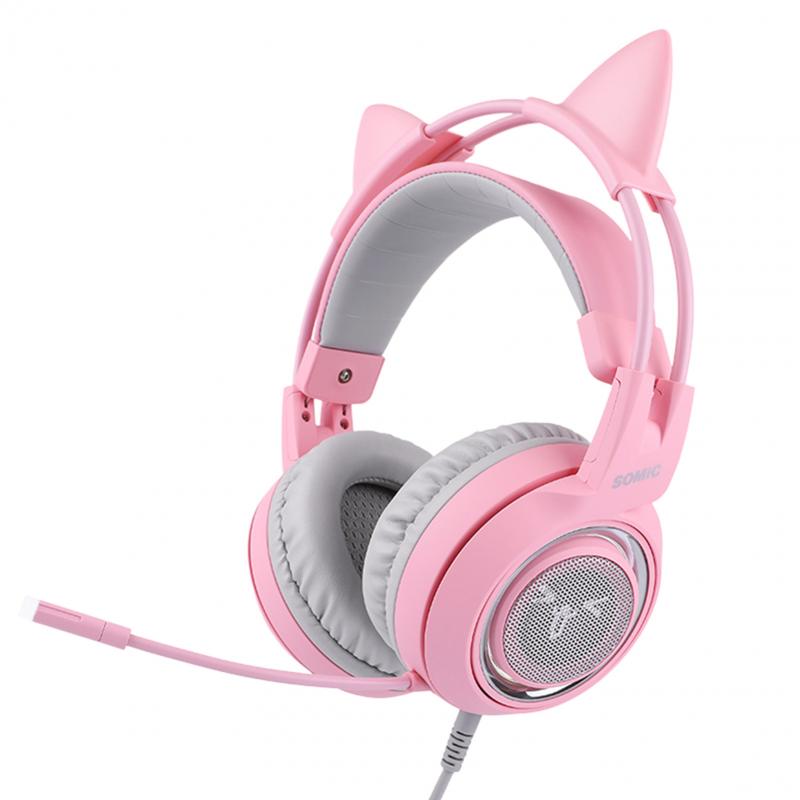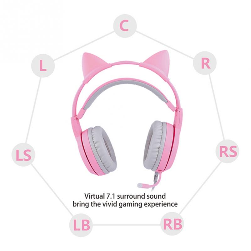 Отзывы о Женская розовая игровая гарнитура 7 1 объемный звук G951 кошачьи уши Стерео