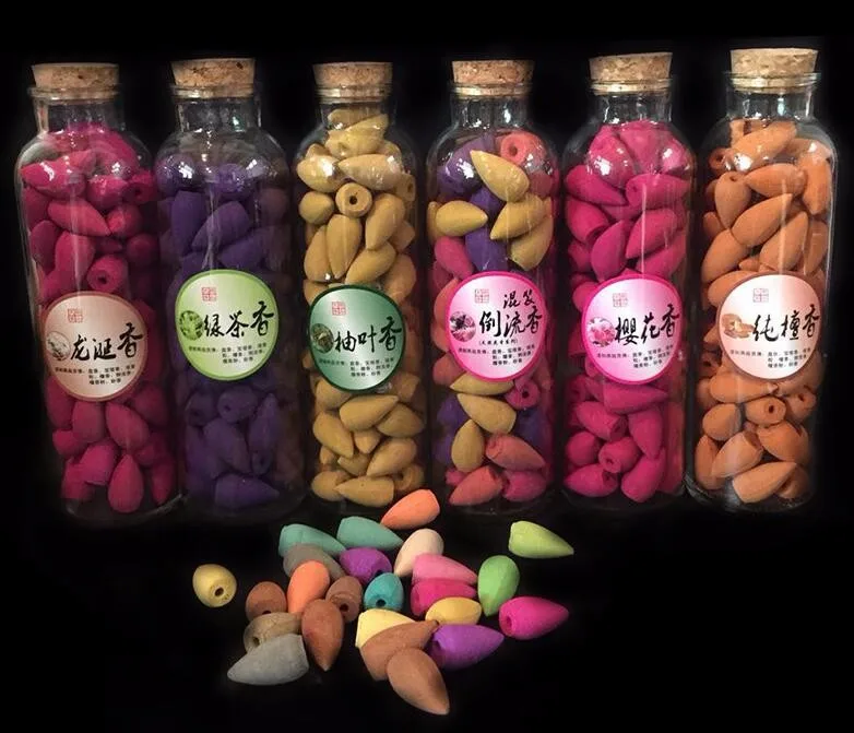 65 шт. посылка со стеклянной бутылкой можно выбрать ароматизатор натурального дыма с обратным потоком благовоний, полые конусы, благовония, сандаловое дерево