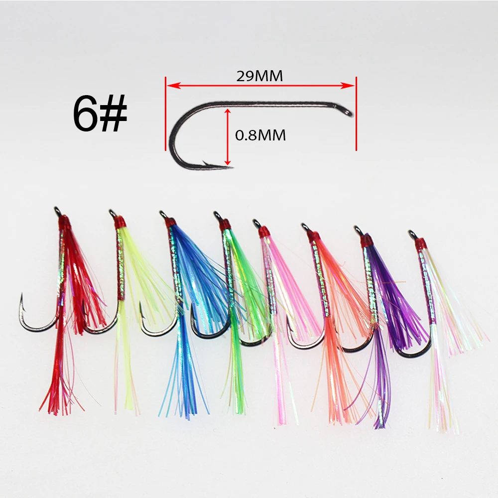 ICERIO 8 шт. 6 # Кристалл мишура Стример Летать для форели окуня Bluegill рыболовные приманки красный зеленый желтый синий фиолетовый розовый