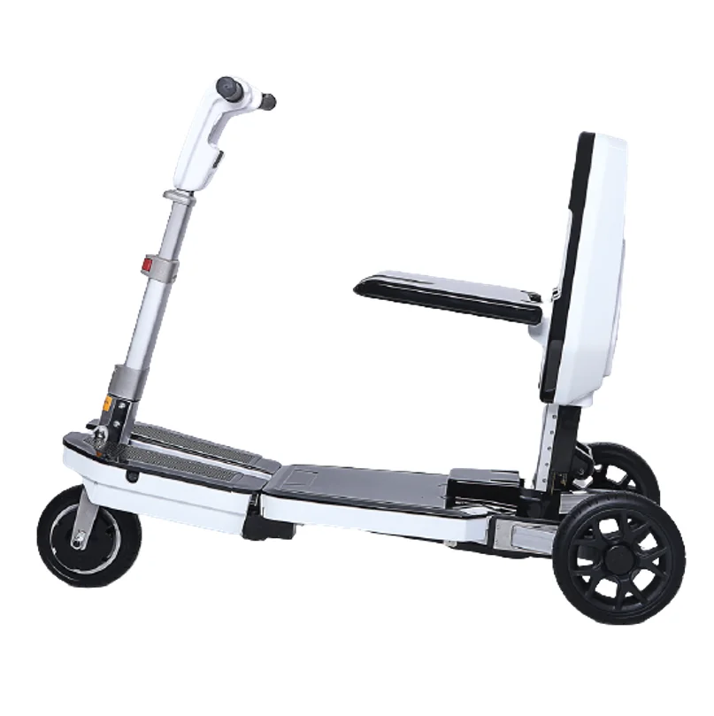 Топ мобильность предлагает Luggie складной, прочный, эргономичный, подвижный скутер, который дает вам свободу и независимости во время путешествия. Его безопасное, простое в использовании управление и прочная конструкция помогут вам перемещаться практически в любом месте, куда вам нужно, в течение дня. Предназначен для использования как в помещении, так и на открытом воздухе, Luggie отлично подходит для поездки в торговый центр или для путешествий по стране на лодке, самолете или поезде. Контурное сиденье из пенопласта с воздушным карманом поглощает вибрацию, обеспечивая максимальный комфорт. Усовершенствованный электронный регулятор скорости с балансировкой скорости обеспечивает плавную, свободную от рывков езду. И интеллектуальная автоматическая тормозная система дает вам дополнительное спокойствие. Съемное Складное Сиденье вместе со складывающейся рулевой колонкой позволяет легко переносить люгги практически в любом автомобиле. Рама скутера изготовлена из магниевого сплава, вес нетто менее 30 кг, максимальная нагрузка 130 кг. Интеллектуальная функция складывания пульта дистанционного управления позволяет складывать и открывать автоматически, очень умный дизайн. Бесщеточный двигатель постоянного тока дает вам более плавный опыт вождения, максимальное расстояние вождения составляет 20 км. 6 регулировка скорости передачи, максимальная скорость может быть 8 км/ч. Это умный скутер для пожилых людей.